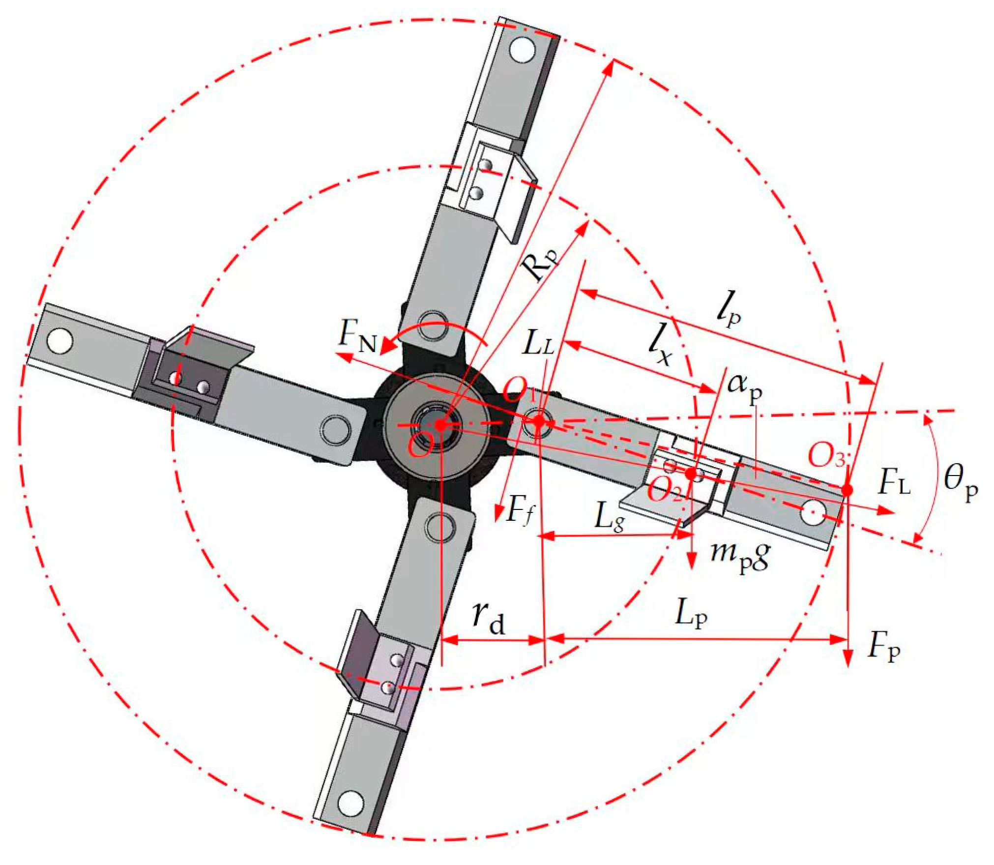 - Crushing long blade edge angle: The blade angle is a critical parameter that influences cutting resistance and straw crushing patterns. A smaller blade angle facilitates penetration but may compromise blade strength, whereas a larger angle significantly increases cutting resistance, adversely affecting crushing efficiency and power consumption. Based on preliminary theoretical analyses and existing blade design experiences, the optimal blade angle range is selected to be between 15° and 35°.
