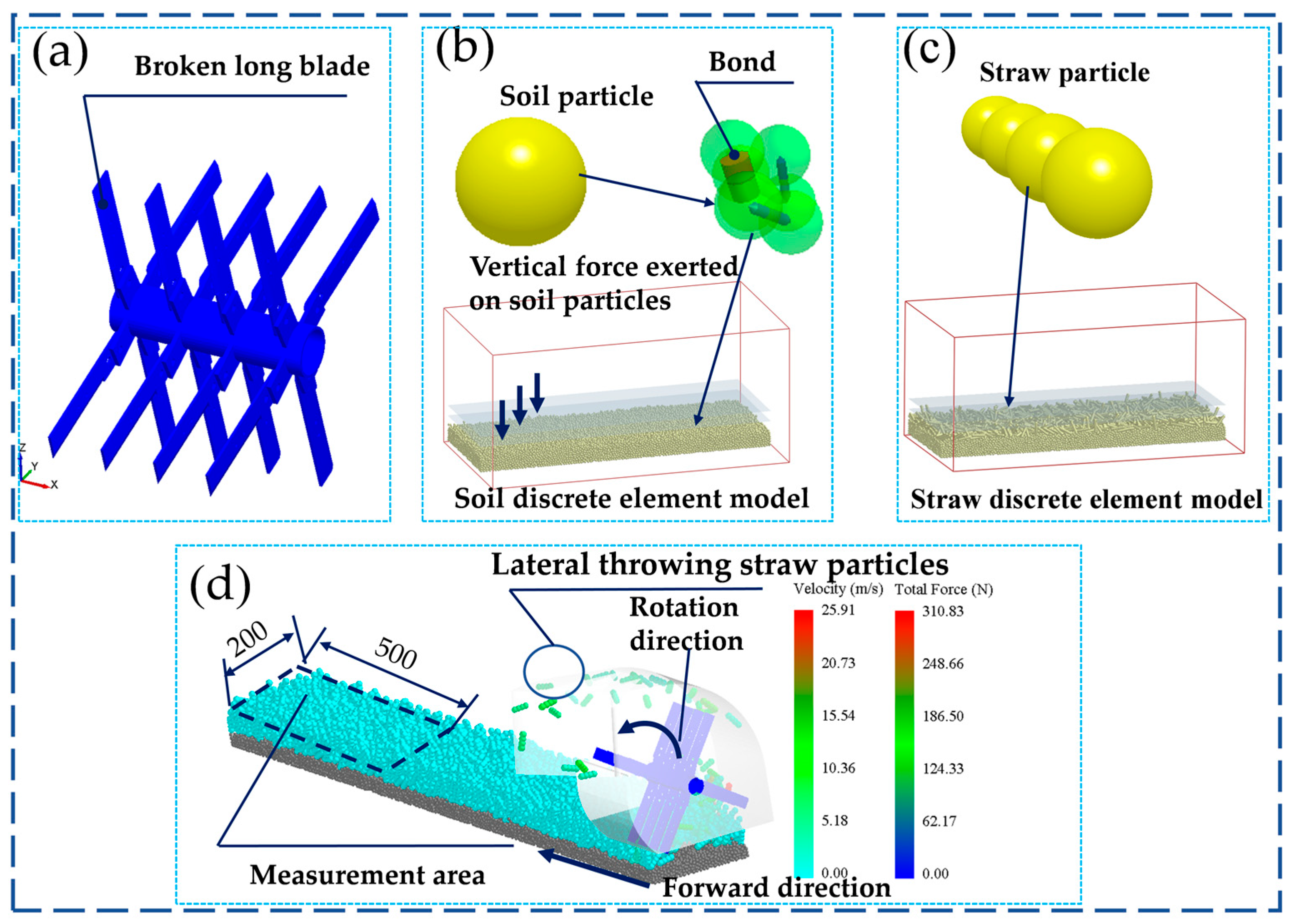 - Liu, P.; He, J.; Zhang, Z.Q.; Lu, C.Y.; Zhang, Z.G.; Lin, H. Kinematic characteristic analysis and field test of chopped stalk in straw retention machine based on cfd-dem coupling simulation method. Trans. Chin. Soc. Agric. Mach. 2020, 51, 244–253. [Google Scholar]