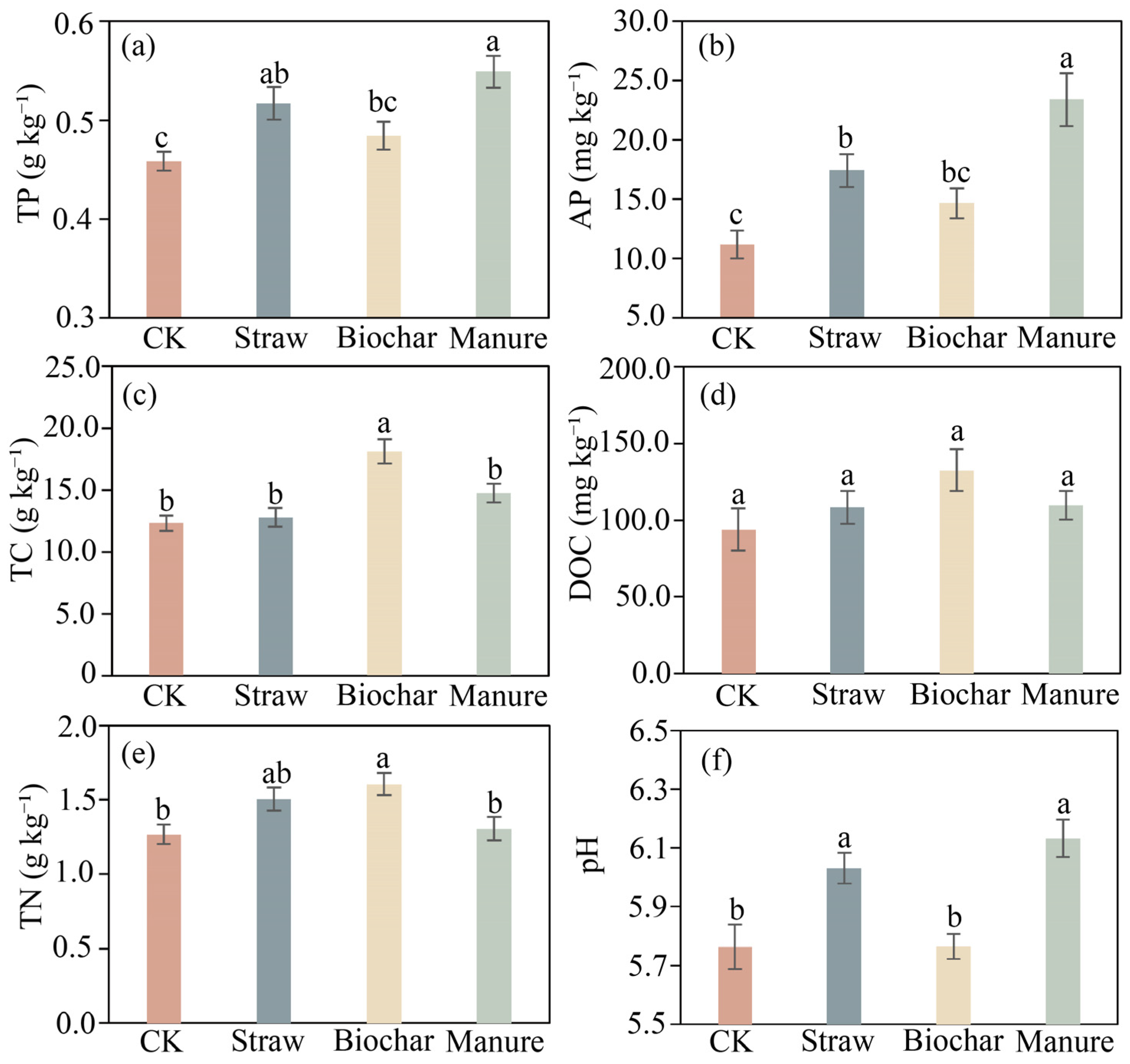 - Chen, L.; Sun, S.; Zhou, Y.; Zhang, B.; Peng, Y.; Zhuo, Y.; Ai, W.; Gao, C.; Wu, B.; Liu, D.; et al. Straw and Straw Biochar Differently Affect Fractions of Soil Organic Carbon and Microorganisms in Farmland Soil under Different Water Regimes. Environmental Technol. Innov. 2023, 32, 103412. [Google Scholar] [CrossRef]