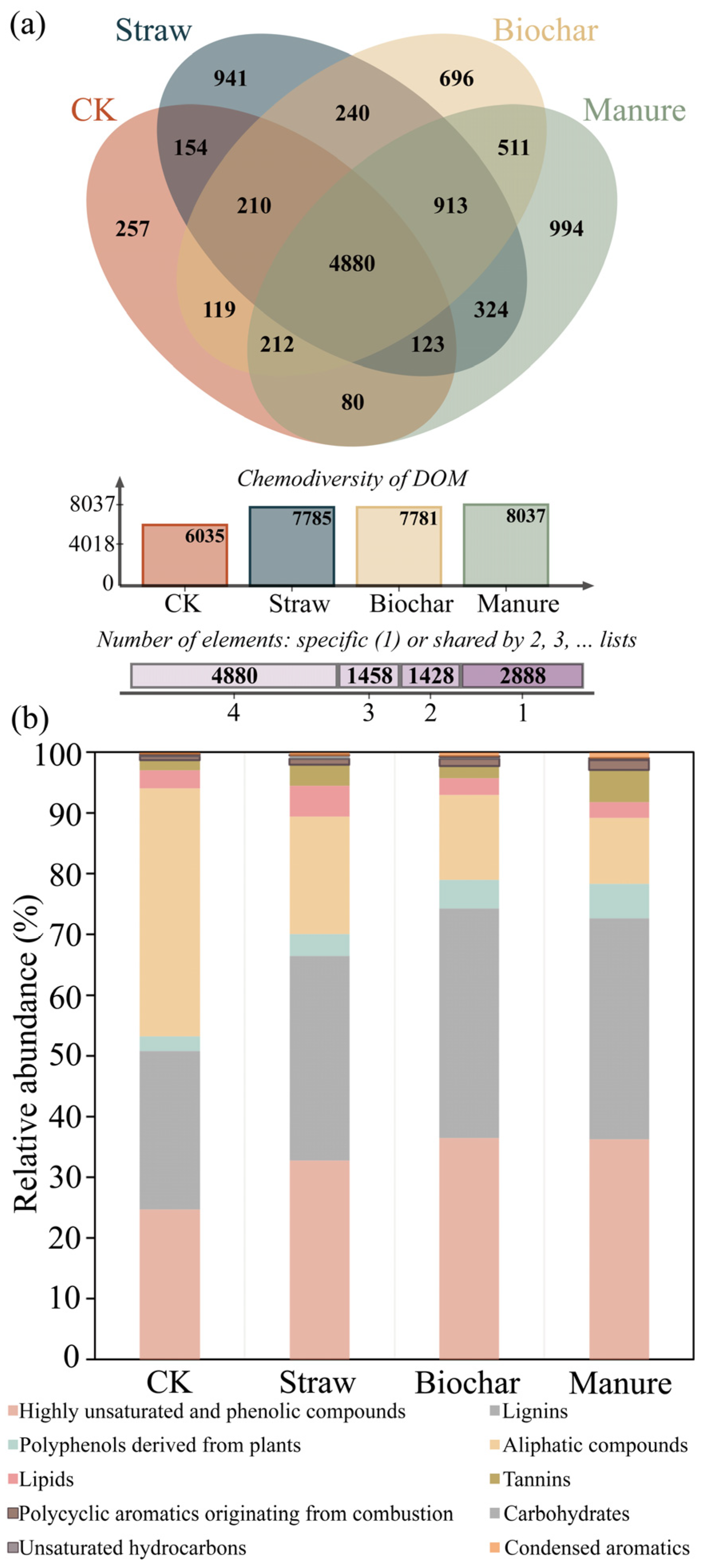 - Cheng, Z.; Li, A.; Wang, R.; Hu, Q.; Zhou, J.; Li, M.; Wang, T.; He, D.; Zhu, L. Long-Term Straw Return Promotes Accumulation of Stable Soil Dissolved Organic Matter by Driving Molecular-Level Activity and Diversity. Agric. Ecosyst. Environ. 2024, 374, 109155. [Google Scholar] [CrossRef]