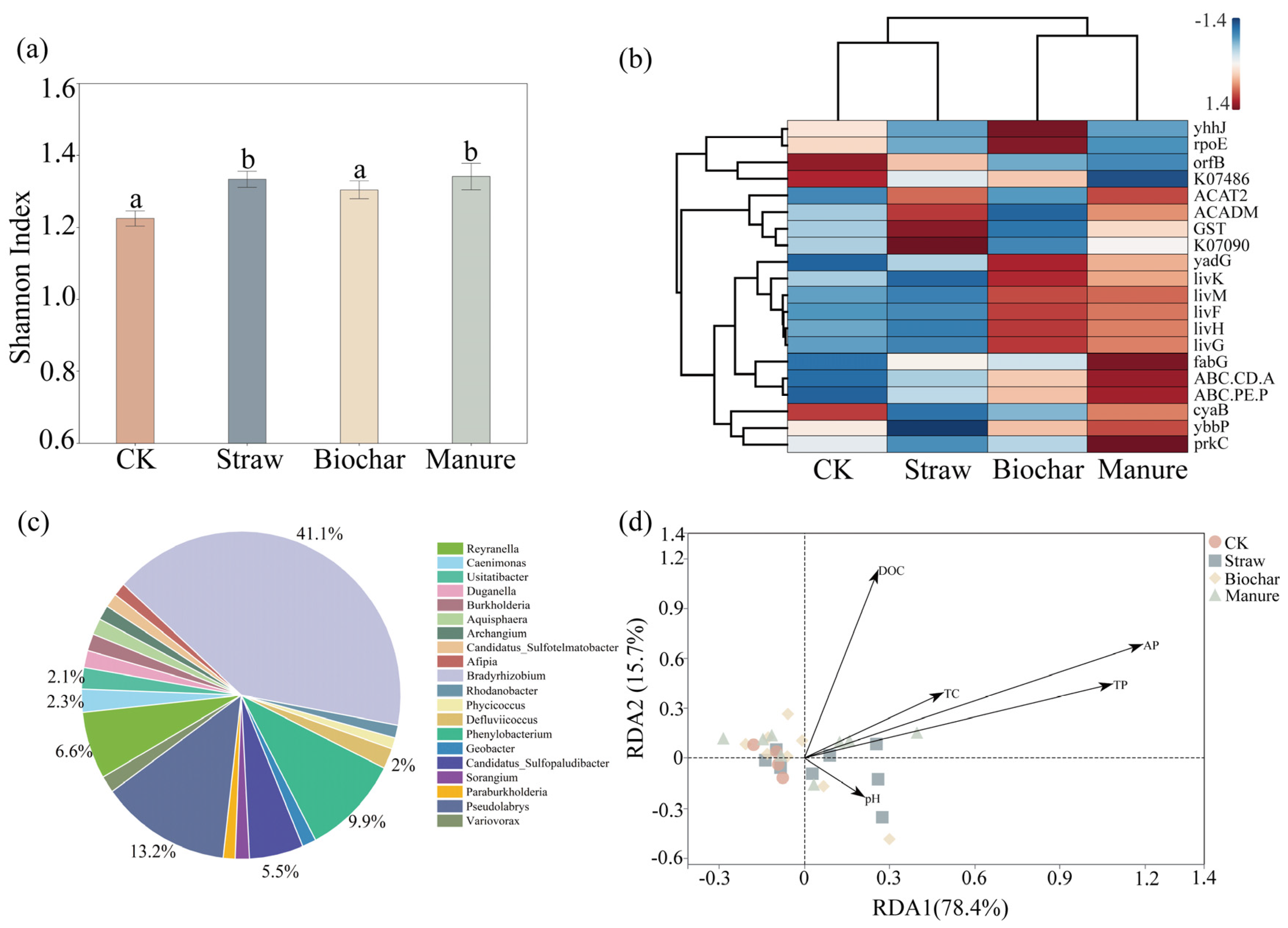 4.3. Organic Fertilization Increase the DOM Transformation Potential via Microbial Functional Gene