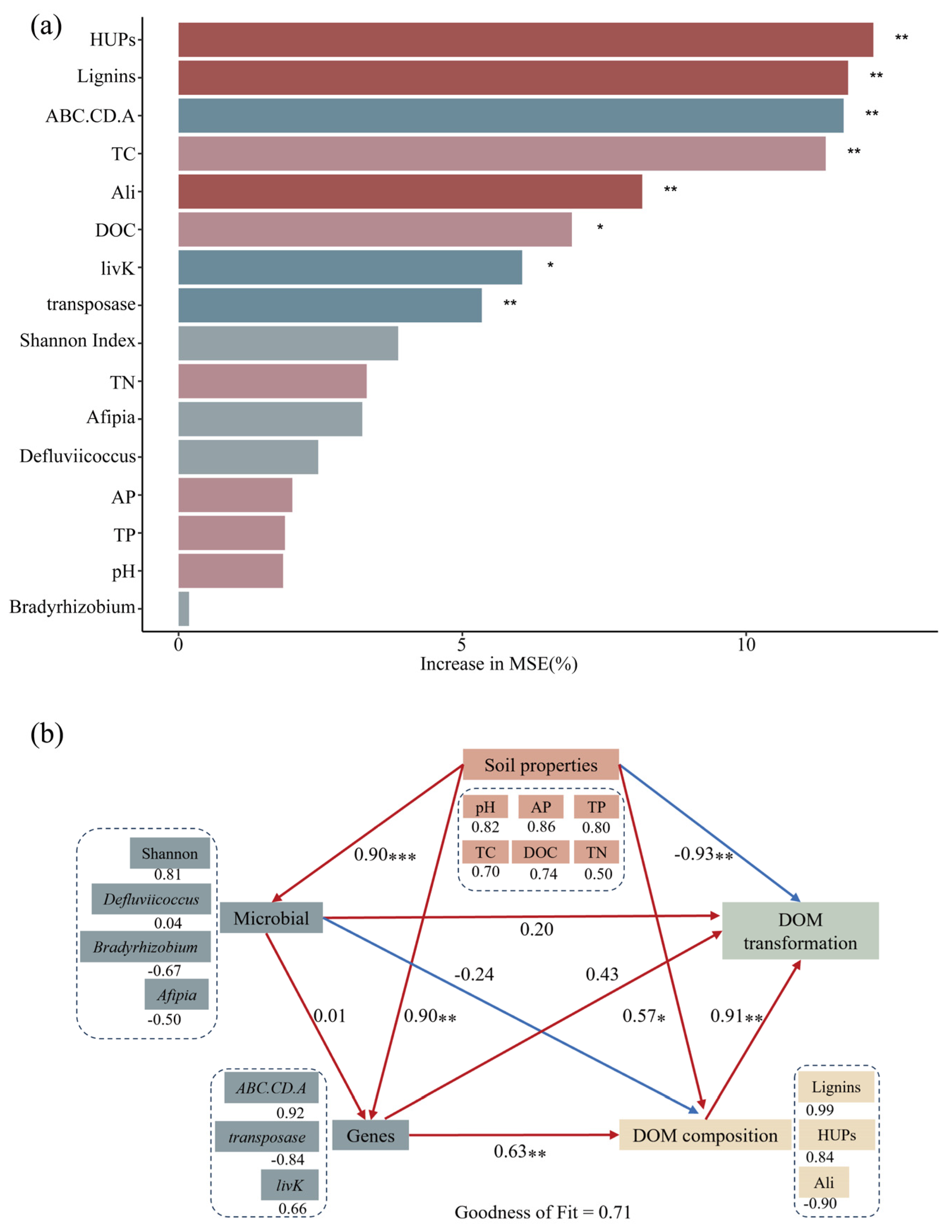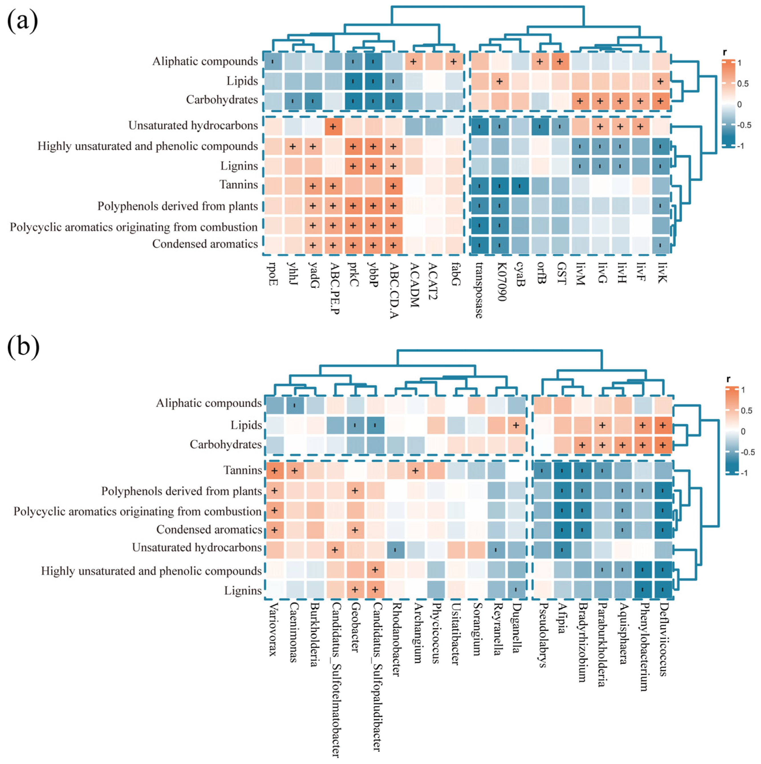 3.5. Relationships Among DOM Molecules, Soil Properties and Microbial Communities