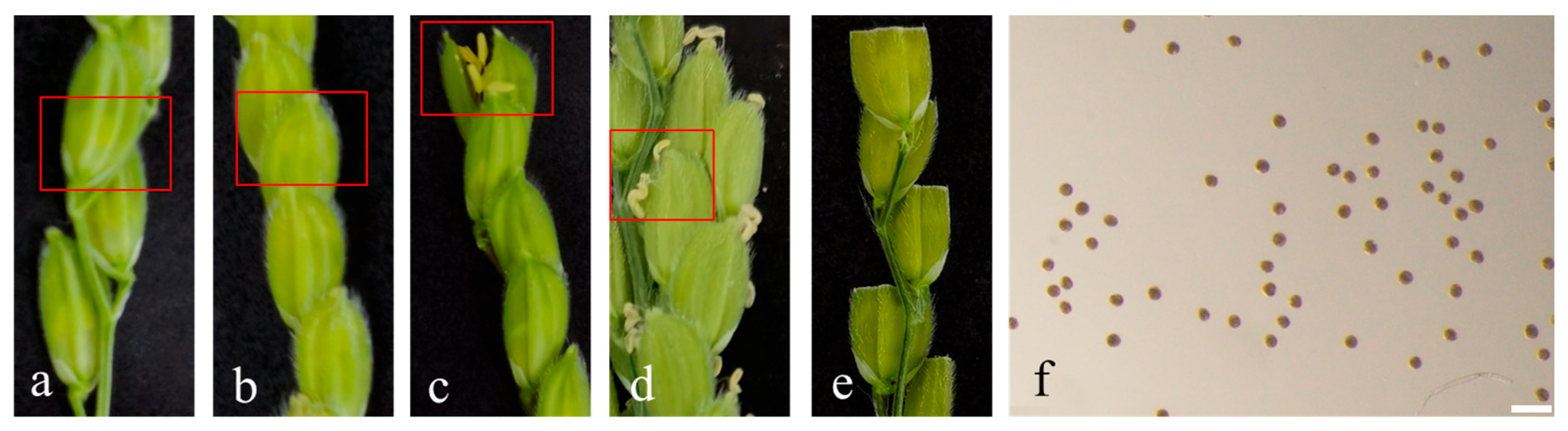 - Khatun, S.; Flowers, T.J. The estimation of pollen viability in rice. J. Exp. Bot. 1995, 46, 151–154. [Google Scholar] [CrossRef]