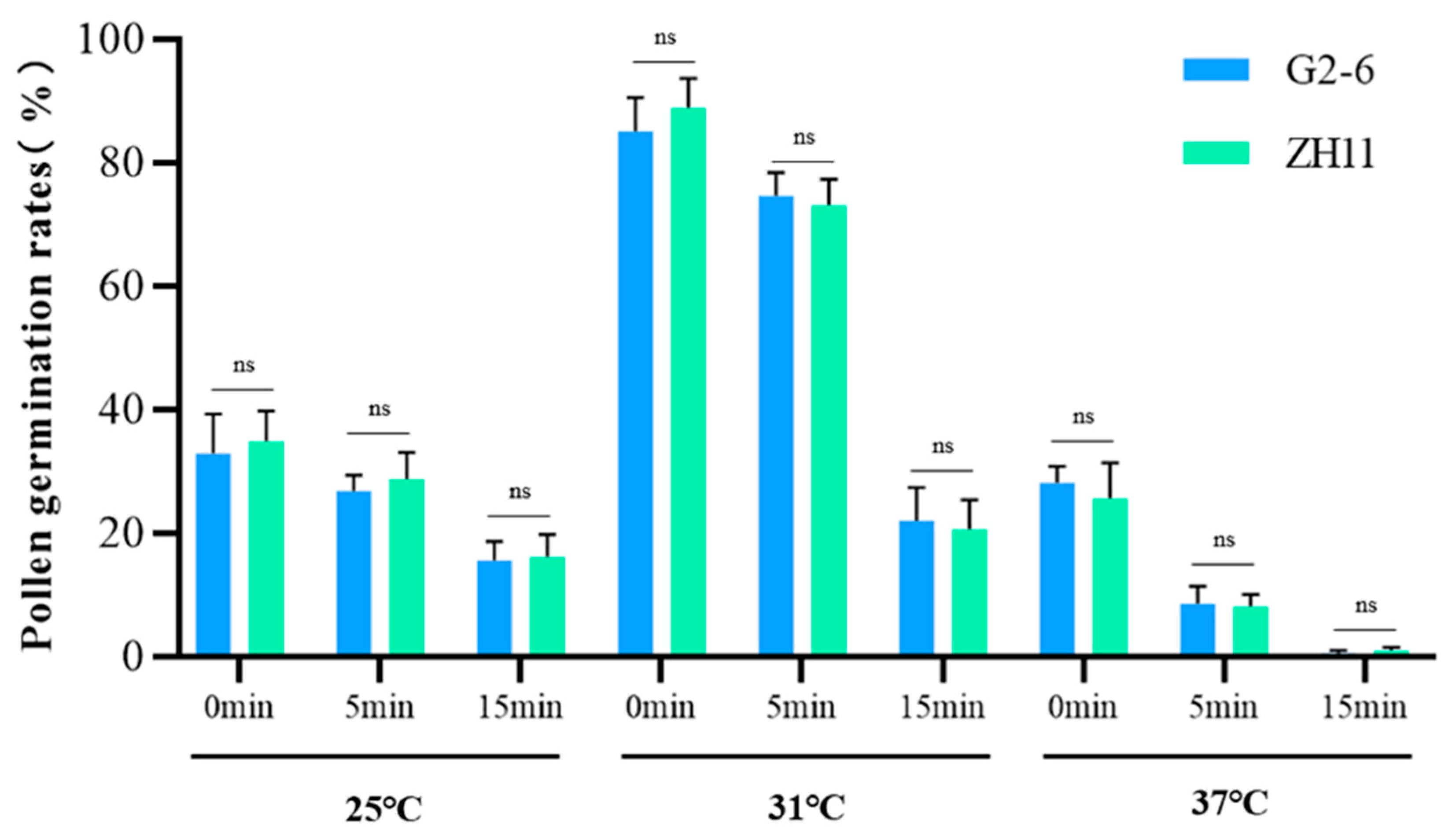 3.6. The Transgenic Event in G2-6 Did Not Affect Pollen Viability Relative to ZH11 Controls