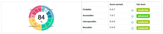 - Devaraju, A.; Huber, R. F-UJI Automated FAIR Data Assessment Tool. 2021. Available online: https://www.f-uji.net/index.php?action=test (accessed on 4 November 2025).