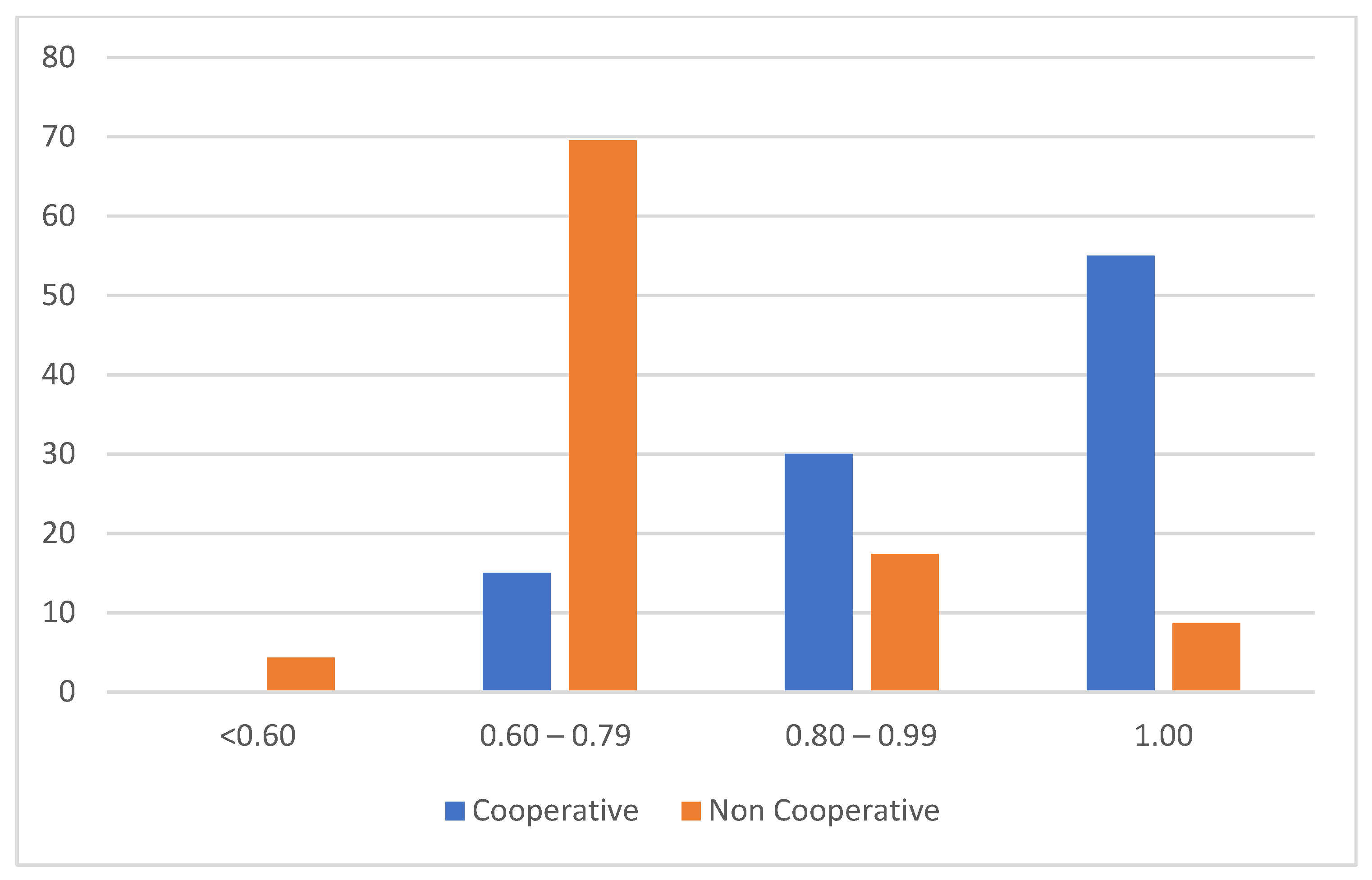 | 0.60–0.79 | 18 | 41.86 | 0.70 |