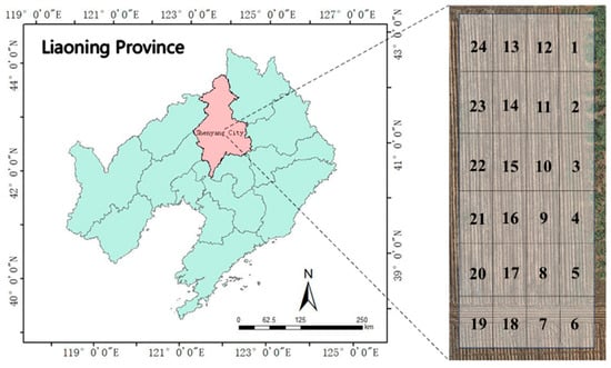The experimental field was systematically divided into 24 sub-areas. This division was designed to balance the spatial resolution required for effective operation with the operational constraints of the plant protection UAV, while also aligning with manageable agronomic unit sizes, facilitating efficient UAV flight path planning, and matching the spraying system’s practical response capability to application rate changes. A finer division was deemed suboptimal, as the marginal precision improvement would be offset by unacceptably increased operational complexity and system latency.
