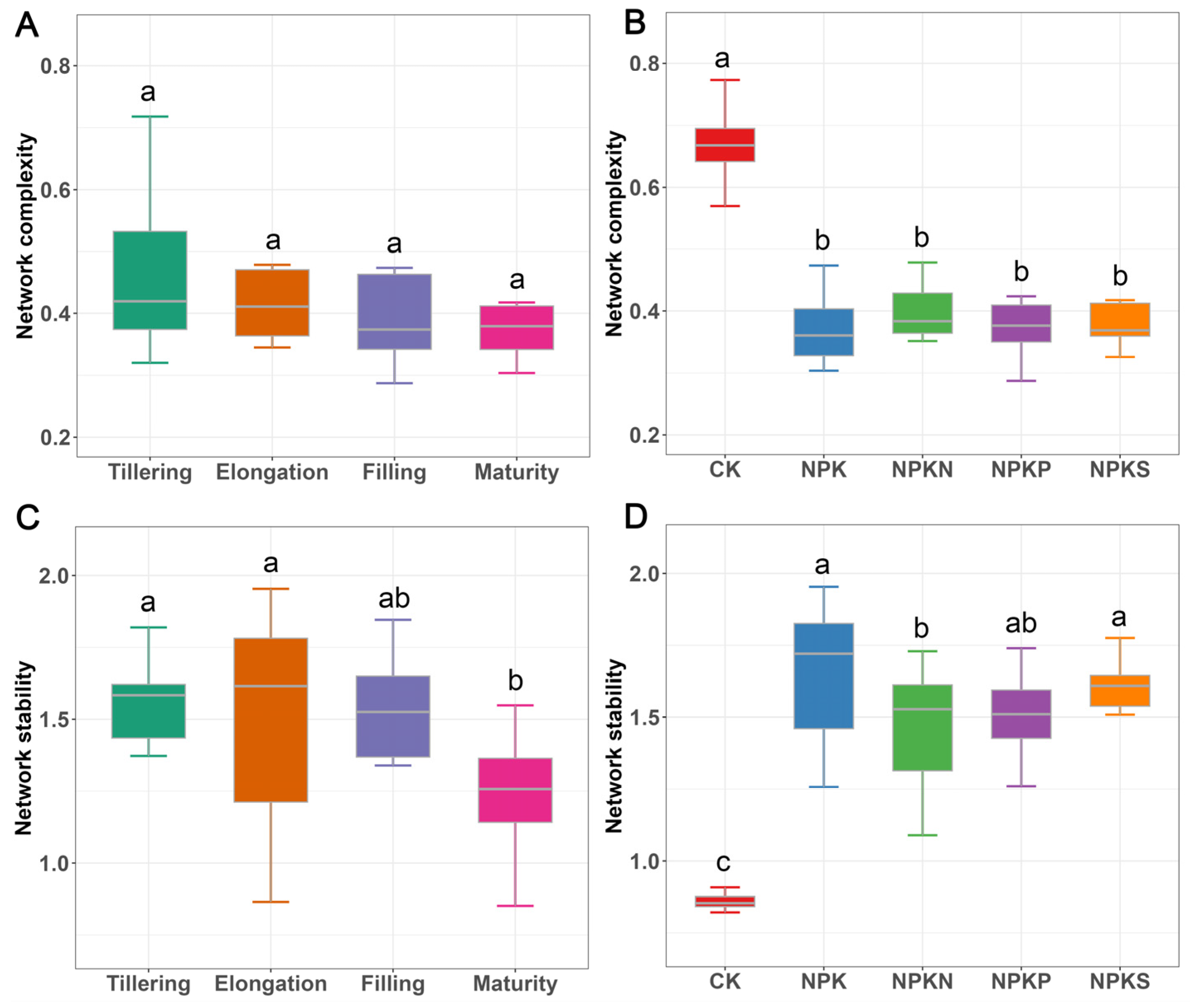 4.3. Fertilizer Addition Reduces the Complexity but Increases the Stability of Network