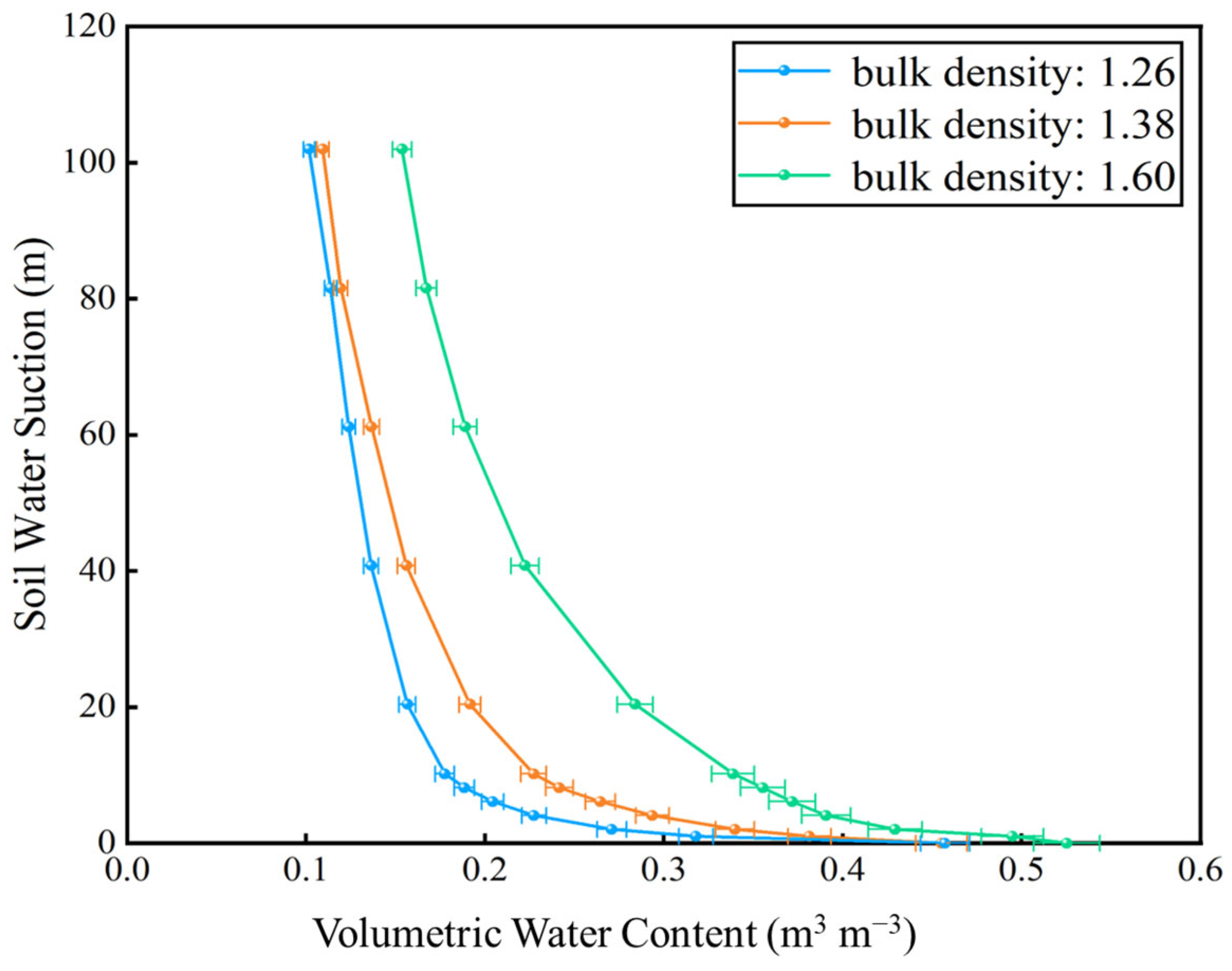 49], θs defines the upper limit of the model’s predictive range by representing the maximum volumetric water content under saturated conditions.