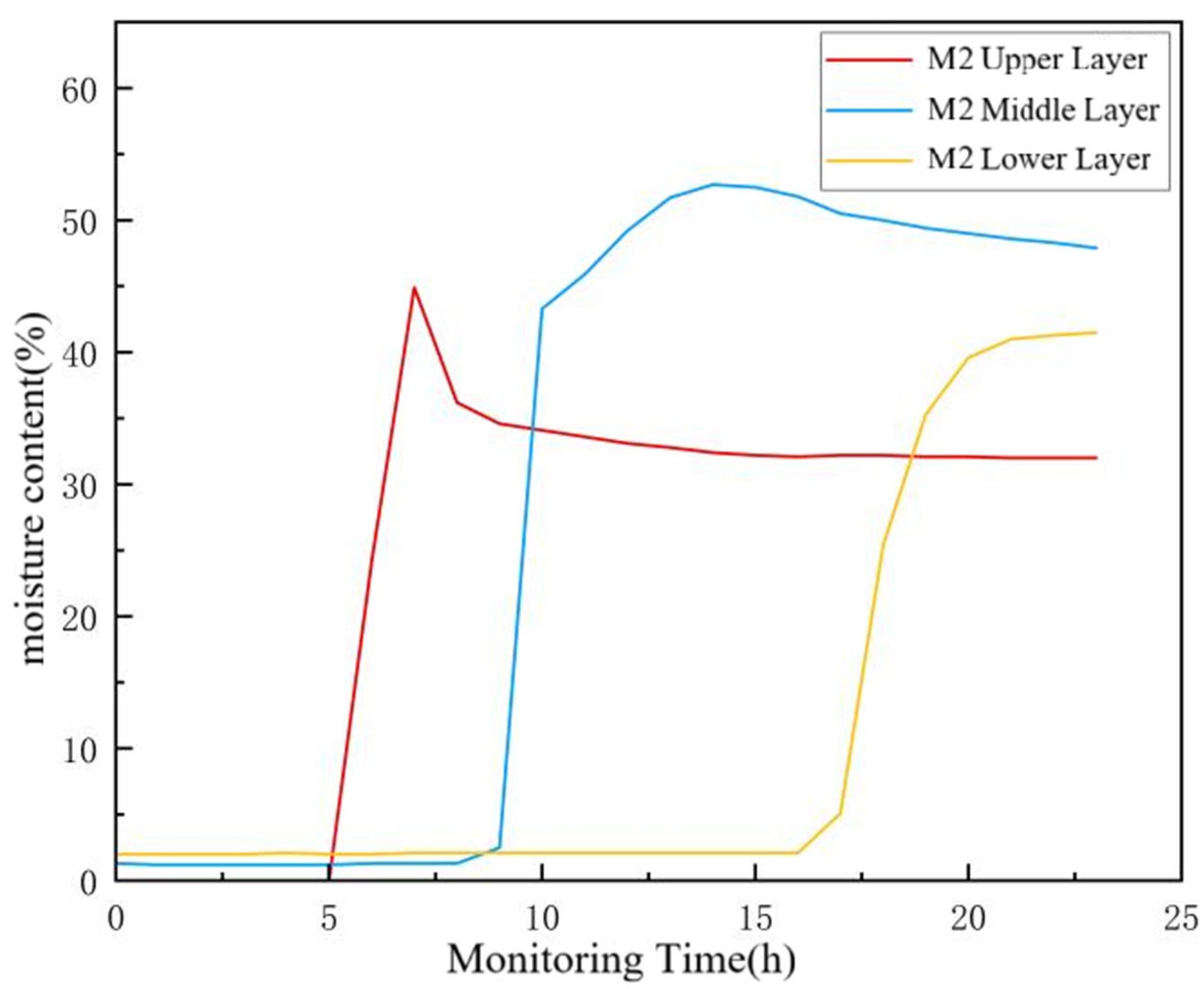Table 8 indicates that all models exhibited superior performance when fitting the M2 (silt soil) samples compared to the M1 (silty sand) and M3 (sandy loam) samples. For the M2 samples, the fitting accuracy, as reflected by the R