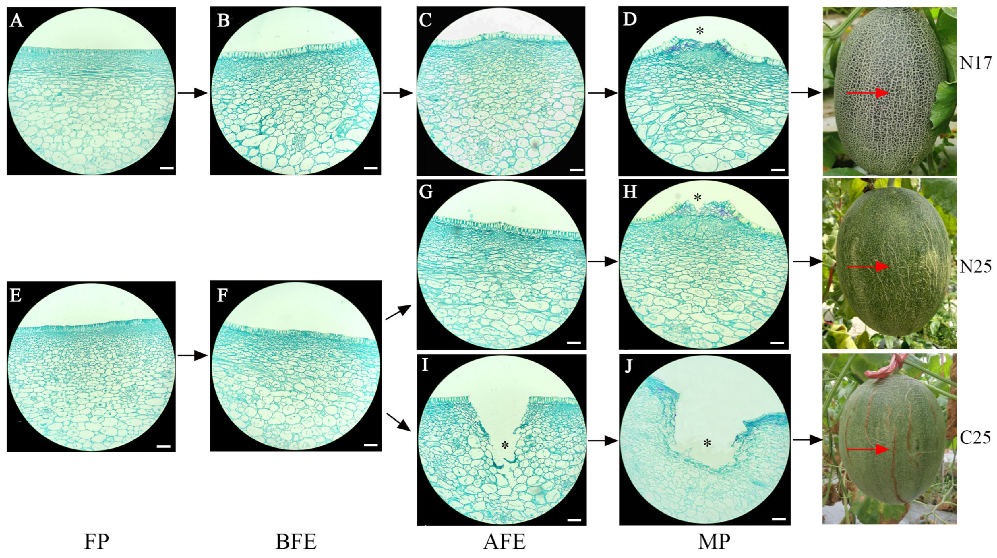 APA StyleHu, Y., Li, Y., Zhang, T., Wang, C., Zhu, B., Tian, L., Wang, M., & Zhou, Y. (2025). Integrated Morphological, Physicochemical, Metabolomic, and Transcriptomic Analyses Elucidate the Mechanism Underlying Melon (Cucumis melo L.) Peel Cracking. Agriculture, 15(23), 2475. https://doi.org/10.3390/agriculture15232475