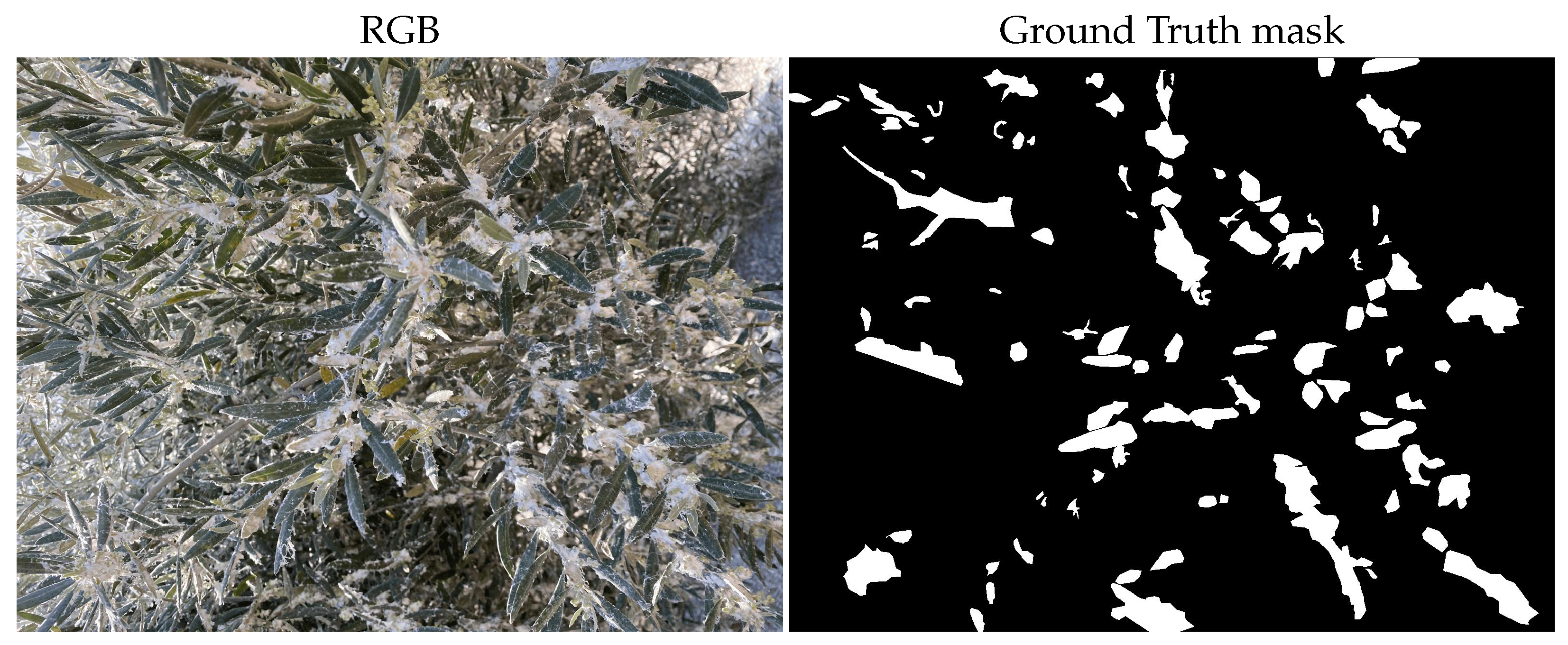 Chicago/Turabian StyleVelesaca, Henry O., Francisca Ruano, Alice Gomez-Cantos, and Juan A. Holgado-Terriza. 2025. "Image Segmentation of Cottony Mass Produced by Euphyllura olivina (Hemiptera: Psyllidae) in Olive Trees Using Deep Learning" Agriculture 15, no. 23: 2485. https://doi.org/10.3390/agriculture15232485