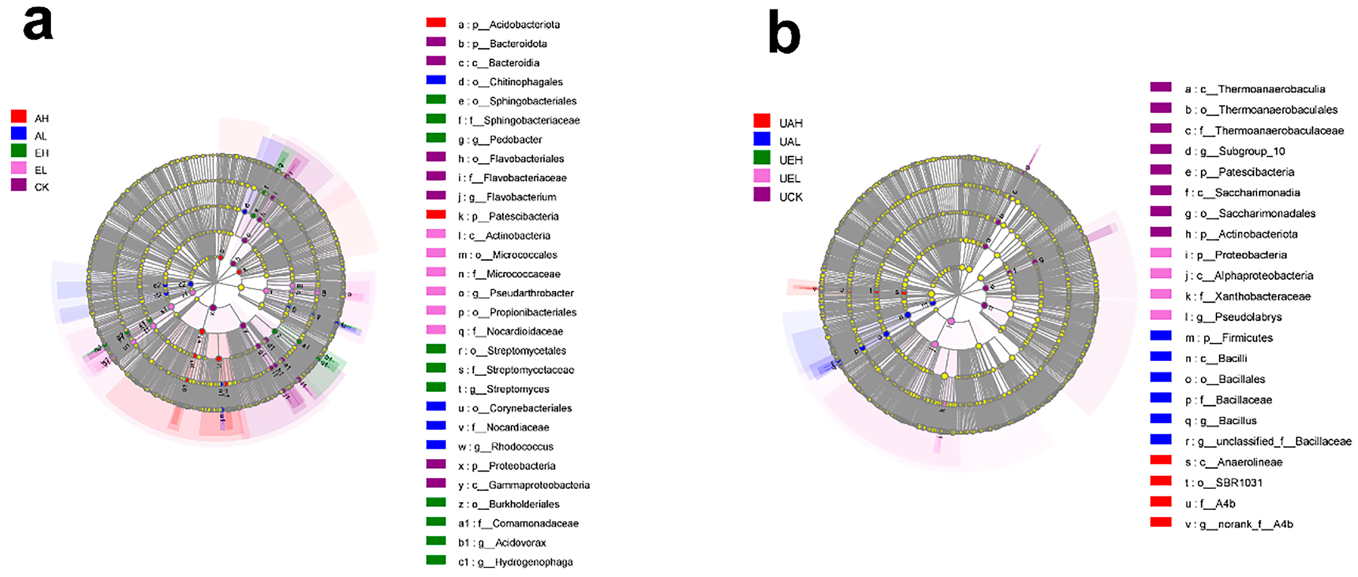 3.3.4. LEfSe Analysis of Differences in Bacterial Community Composition in Substrate Samples