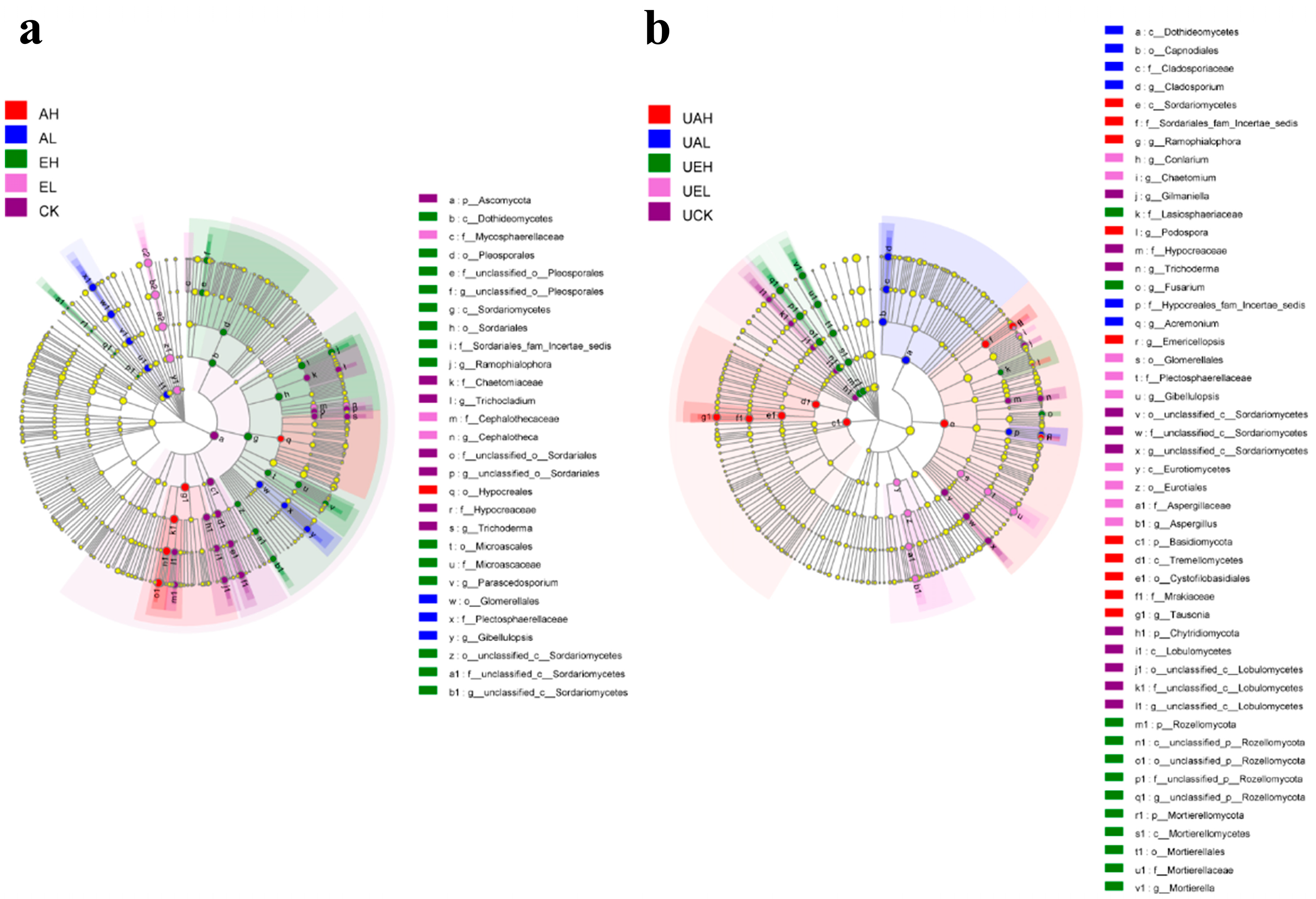 3.4.4. LEfSe Analysis of Differences in Fungal Community Composition in Substrate