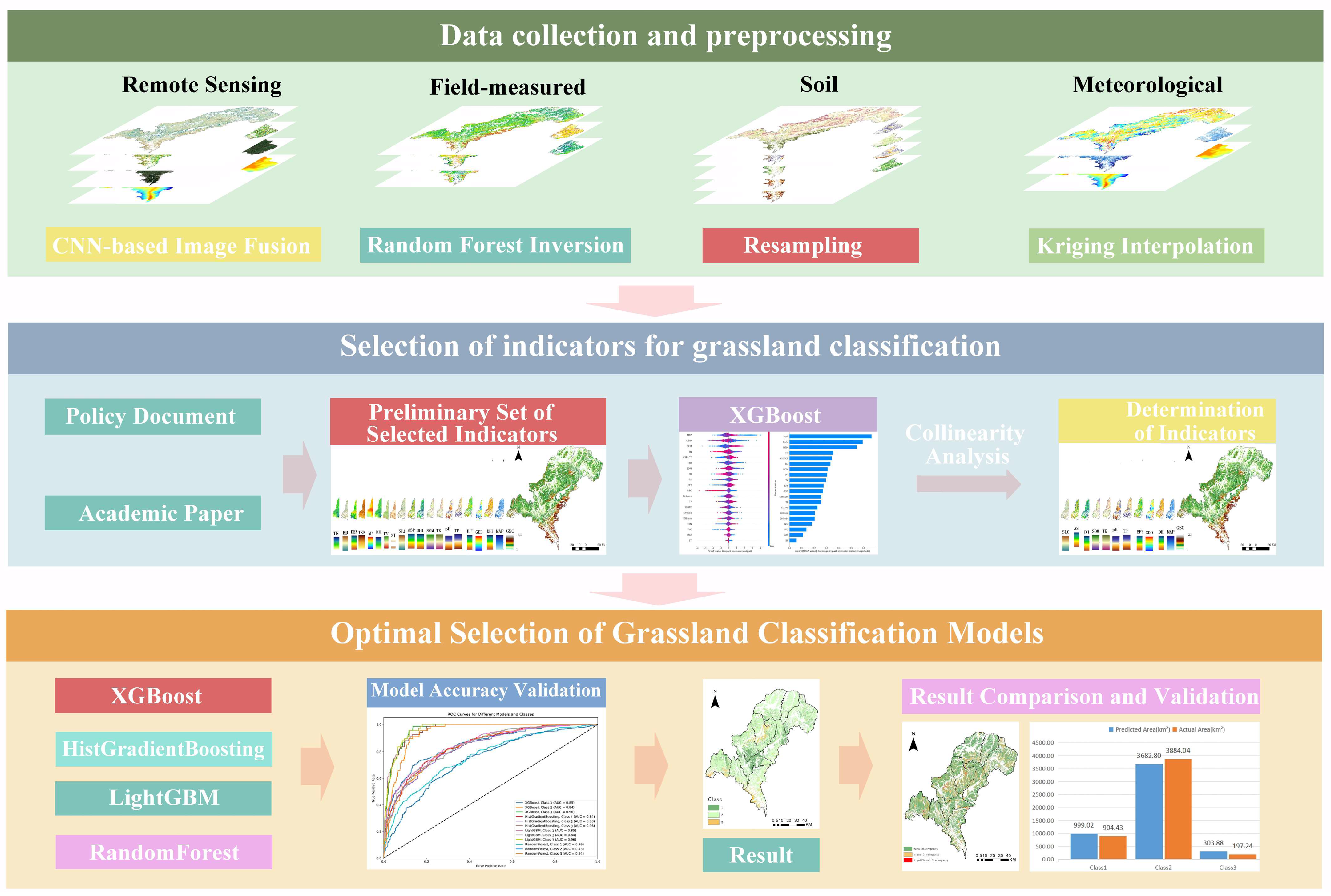 - Data processing: utilize machine learning methods to fuse multi-source heterogeneous grassland data and accurately characterize grassland information;