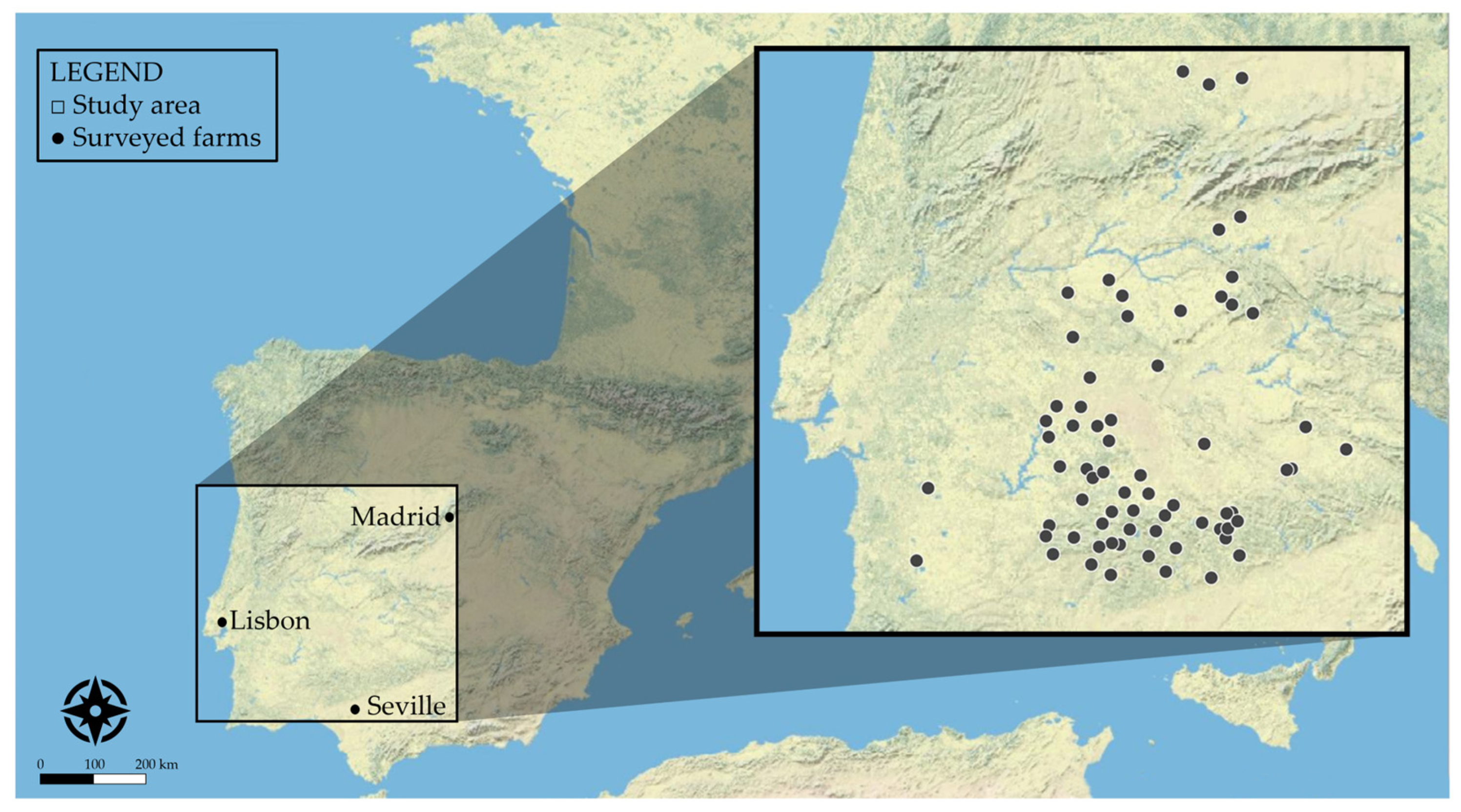 3.1. Characteristics of the Iberian Farms in the Dehesa Ecosystem