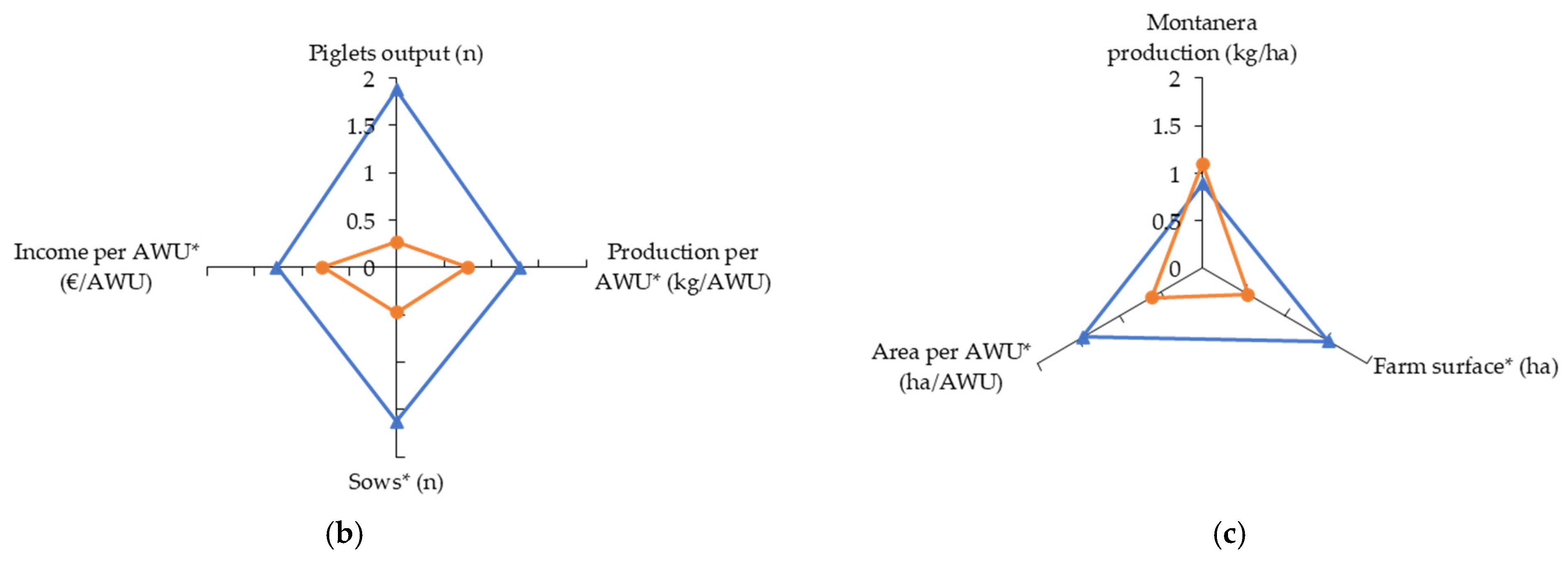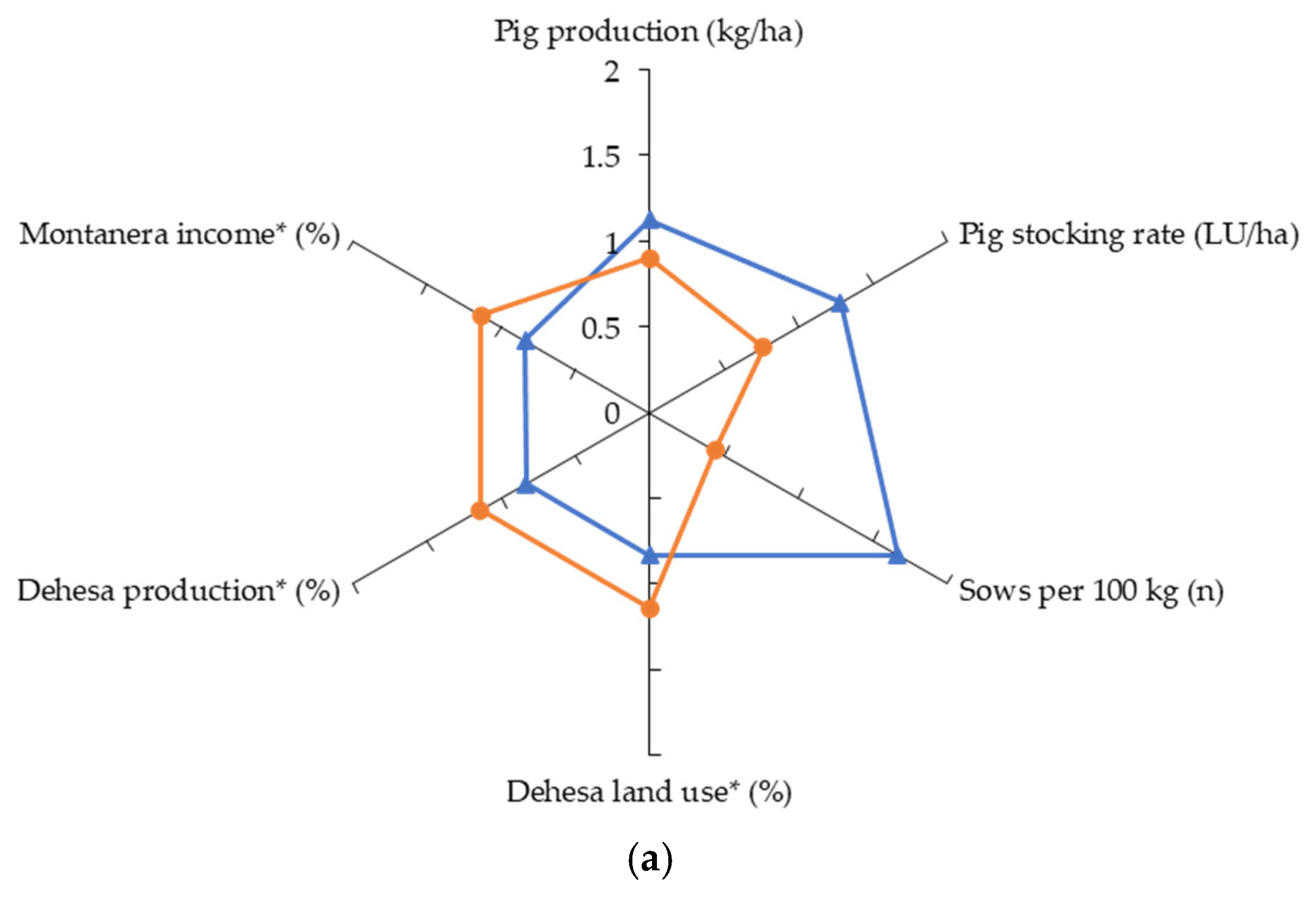 4.3. Production Models of Iberian Pig Farms in the Dehesa Ecosystem
