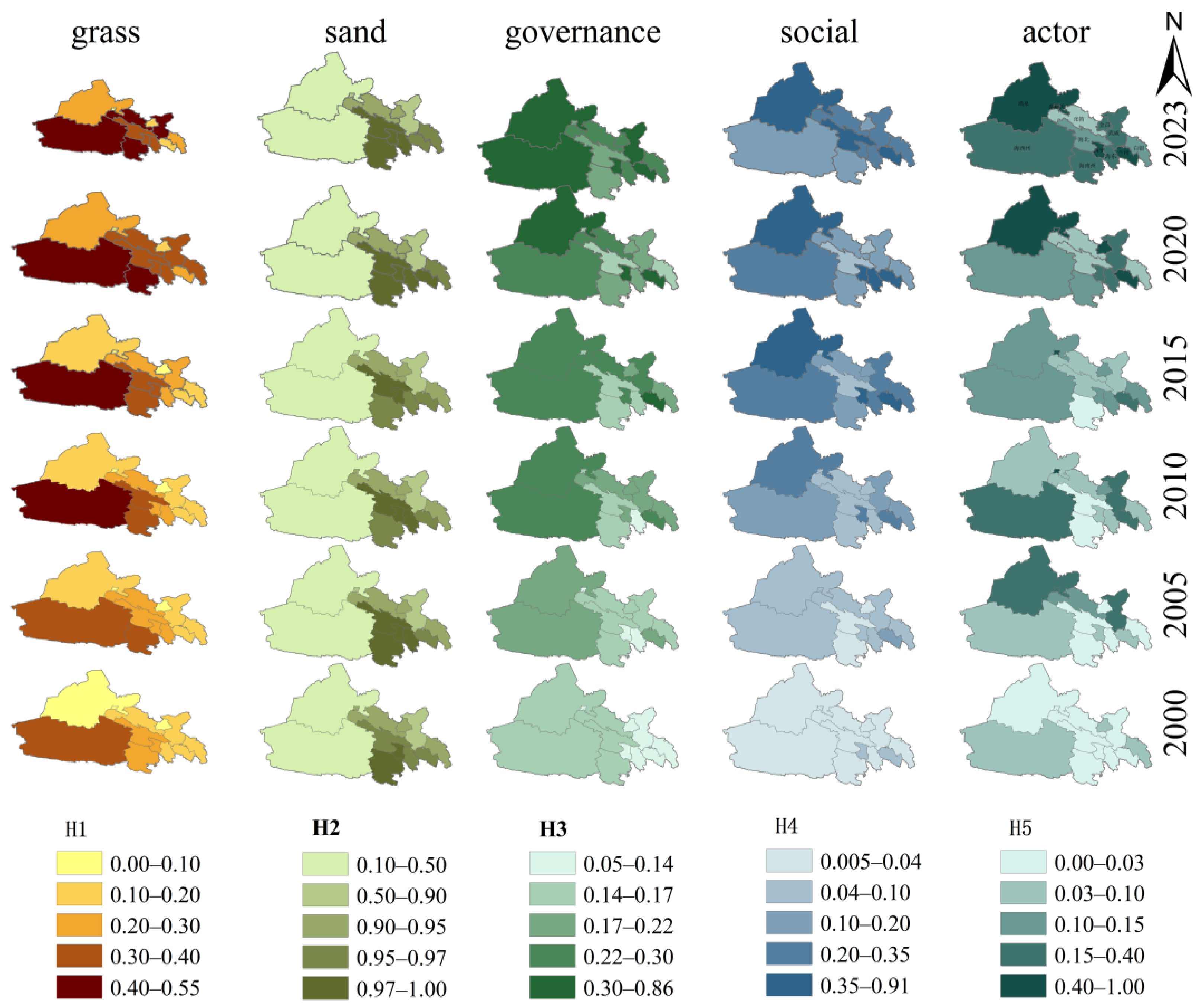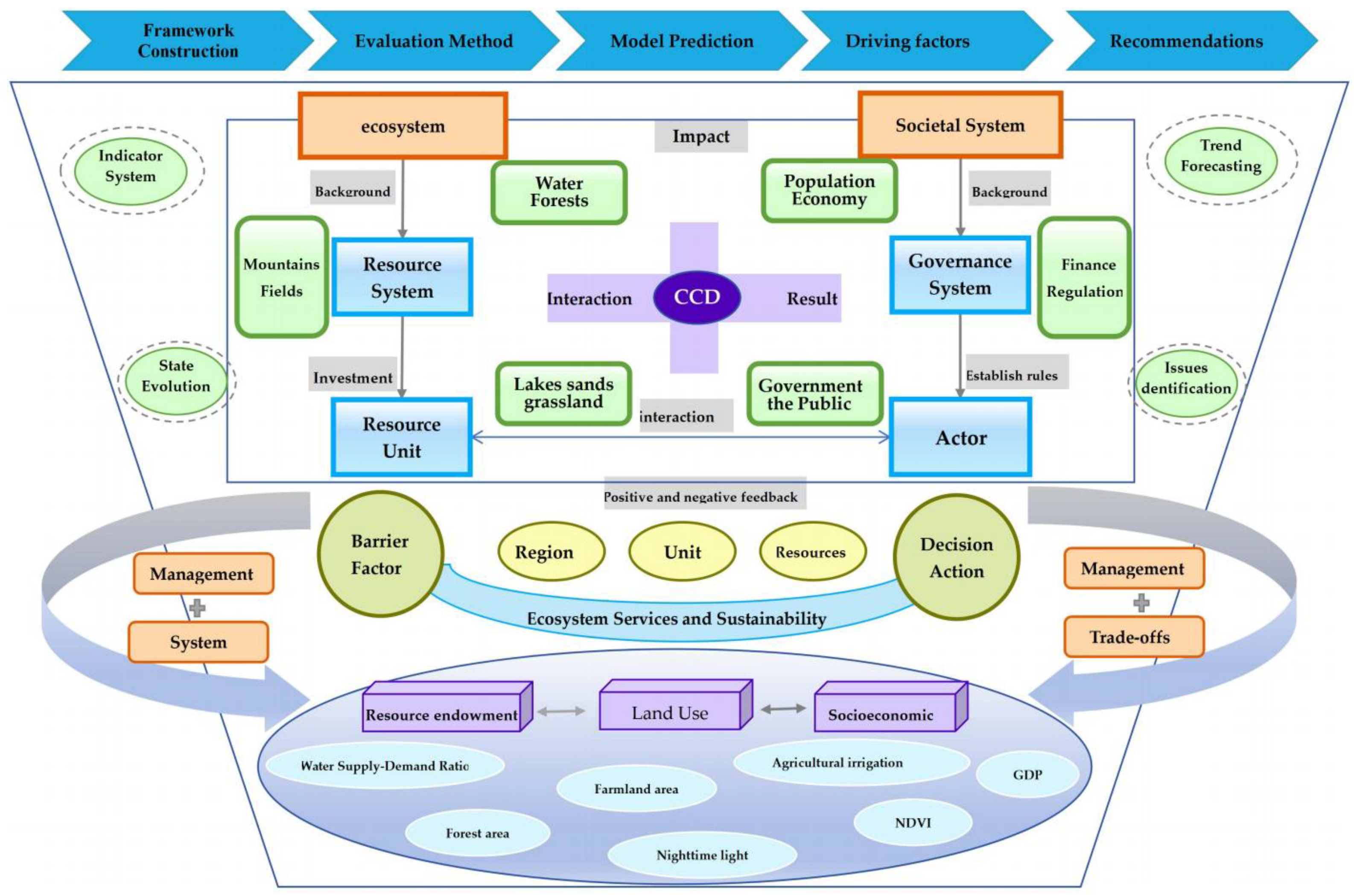 - You, C.; Qu, H.J.; Guo, L. Spatio-temporal coupling and prediction of social-ecological systems under the “concept of life community of mountains, water, forests, fields, lakes, grasses, and sands”. Acta Ecol. Sin. 2024, 44, 2745–2760. [Google Scholar]