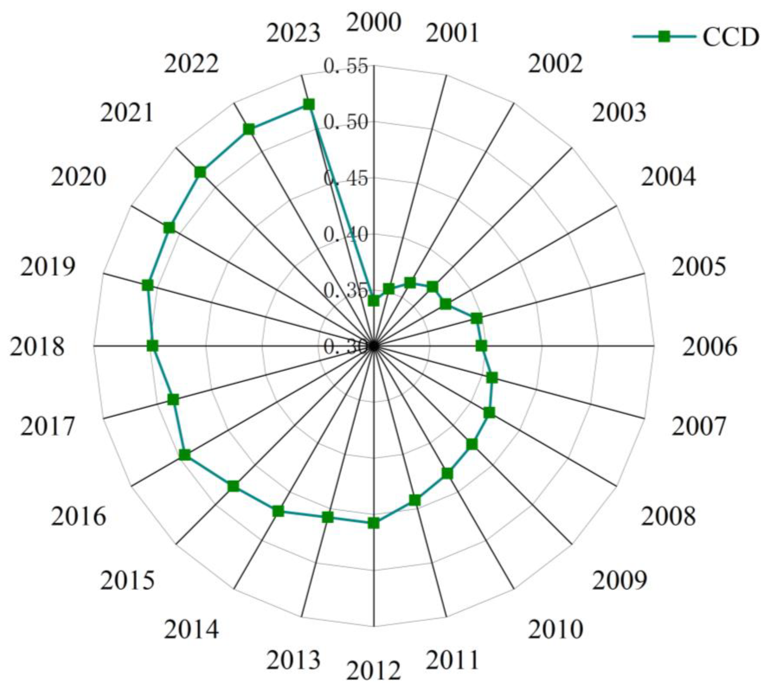 - Comprehensive Index Calculation: The comprehensive assessment index for each year was calculated.