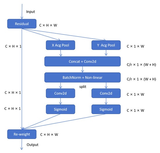 - Hou, Q.; Zhou, D.; Feng, J. Coordinate Attention for Efficient Mobile Network Design. In Proceedings of the IEEE/CVF Conference on Computer Vision and Pattern Recognition (CVPR), Nashville, TN, USA, 20–25 June 2021; pp. 13713–13722. [Google Scholar]