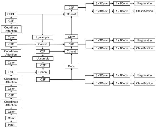 where represent the classification, bounding box regression, and objectness confidence losses, respectively. The weighting coefficients λ1, λ2, and λ3 were empirically tuned through ablation experiments to achieve optimal performance across detection precision and convergence stability.