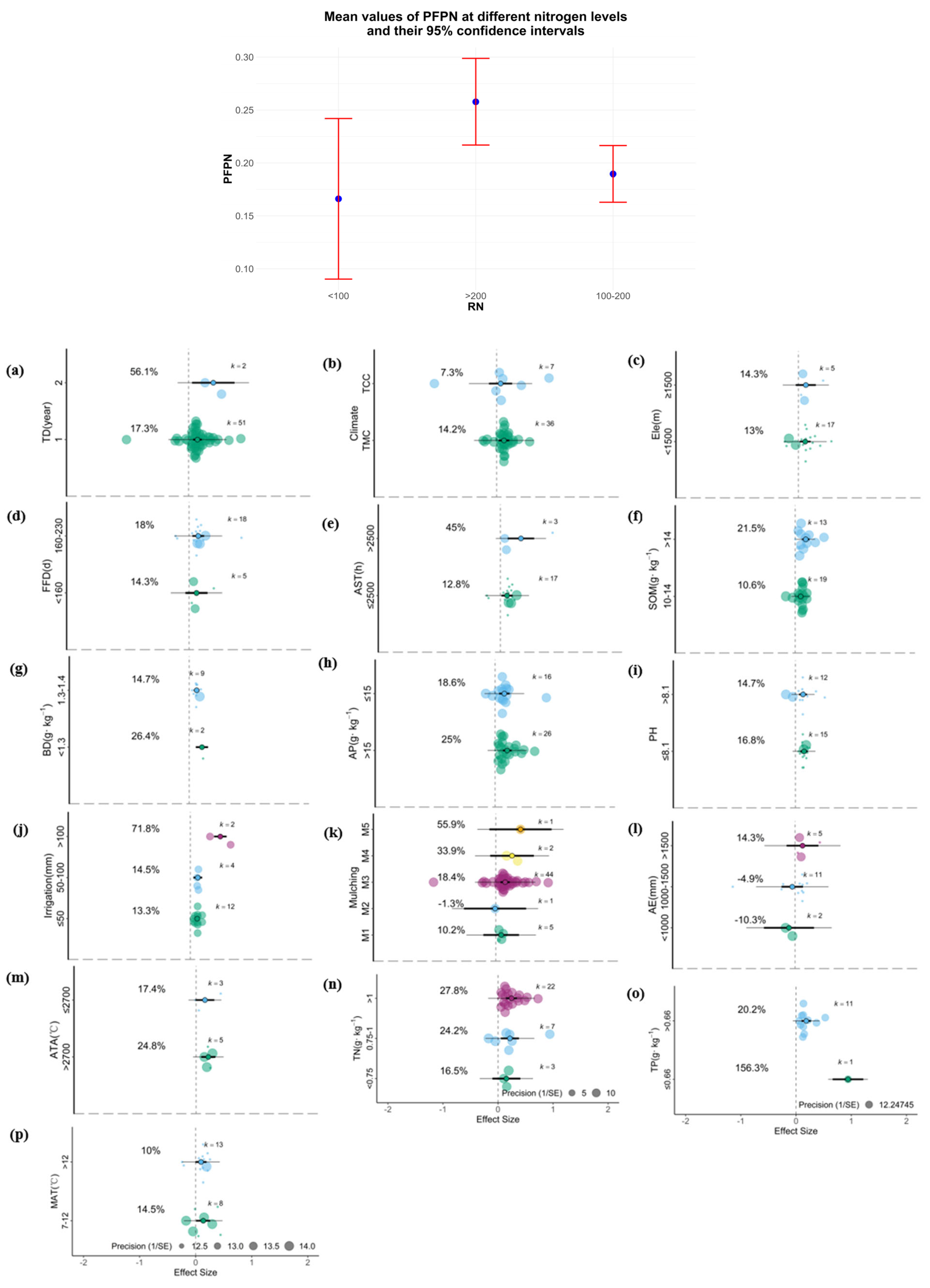 3.1.3. Effect of Nitrogen Application Rates on PFPN Under Different Conditions