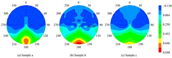 Xu Xiang et al. [51] successfully demonstrated a rapid and non-destructive method for detecting the water content in plant leaves by calculating the degree of linear polariza-tion (DoLP) based on Stokes parameters. Takruri, M et al. [52] generated degree of linear polarization (DoLP) and angle of polarization (AoP) images from captured polarization images, and employed Support Vector Regression (SVR) and Gaussian Process Regression (GPR) models to predict the actual age of apples, achieving an average prediction accuracy of up to 92.57%. Shibayama, M et al. [53] examined the polarization characteristics of wheat canopies by calculating the degree of polarization (DoP) for each image pixel and generating polarization images. Their results revealed a clear correlation between the DoP and factors such as the leaf tilt angle, leaf area index (LAI), and chlorophyll content (SPAD value). In 2024, He, QY et al. [54] developed a pBRDF model for plant canopies, generating fitted images of the polarization degree changes with the zenith angle. Data inversion on the canopies of Christmas blue cabbage and hibiscus resulted in root mean square errors of 2.3% and 1.1%, respectively (Figure 5).