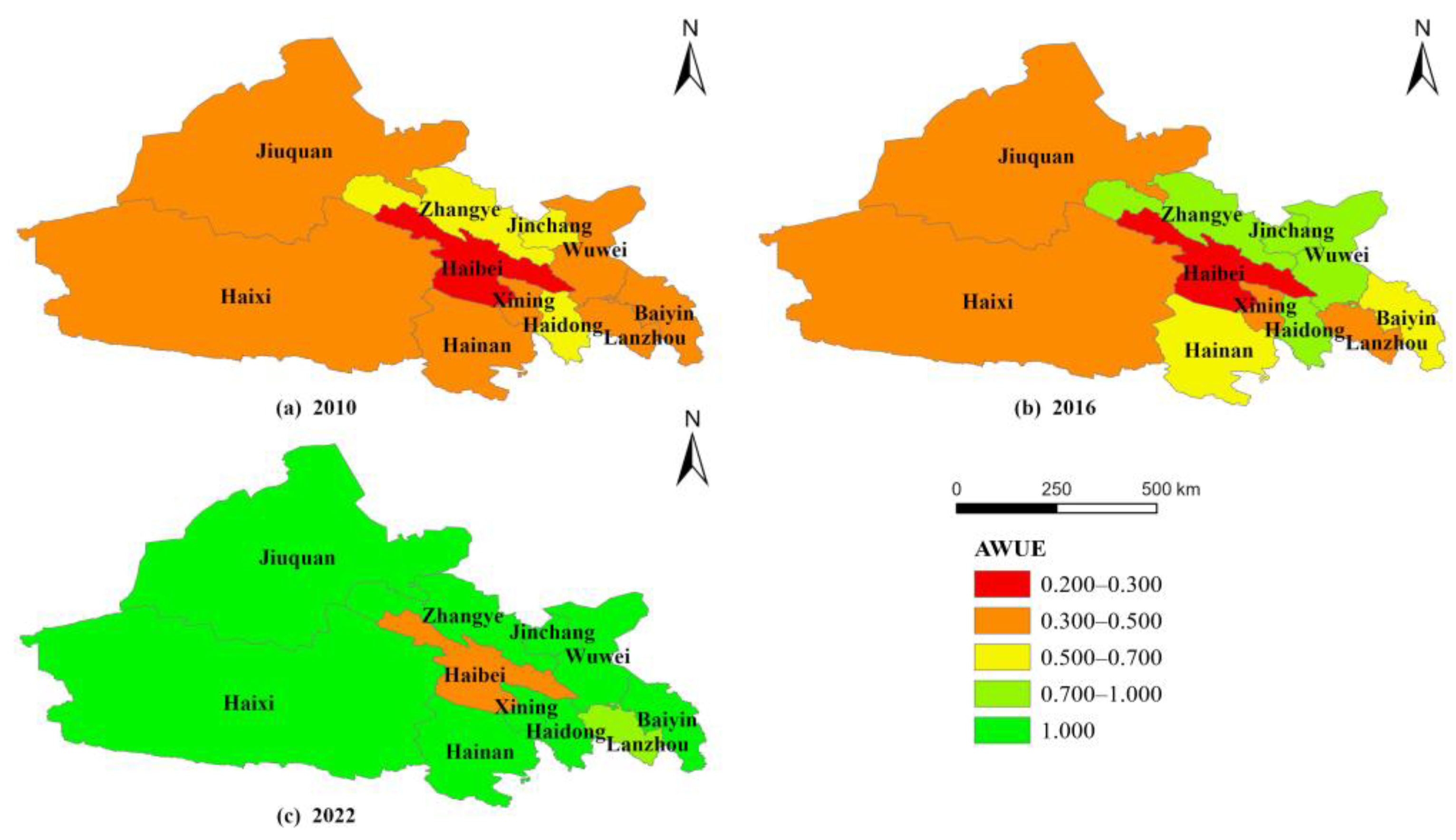 - From 2010 to 2022, both AWUE and the AEDL in these areas showed an upward trend, with a spatial pattern summarized as being higher in the northeast and lower in other regions. By 2022, the overall AWUE has reached a high level, and most cities have achieved an effective status. Conversely, while the AEDL also increased substantially over the same period, the overall AEDL has remained relatively low, indicating significant room for improvement.