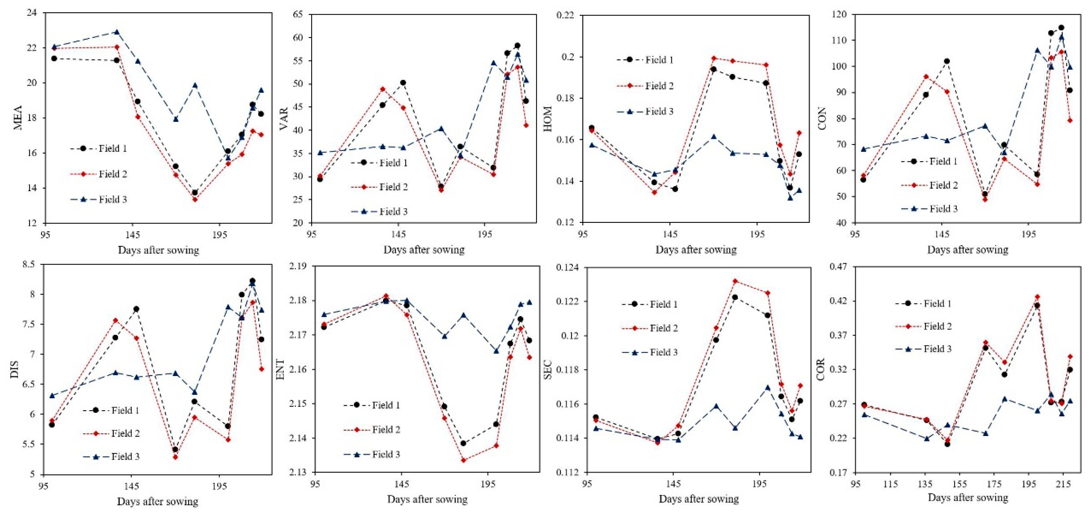 - Li, H.; Yan, X.; Su, P.; Su, Y.; Li, J.; Xu, Z.; Gao, C.; Zhao, Y.; Feng, M.; Shafiq, F. Estimation of winter wheat LAI based on color indices and texture features of RGB images taken by UAV. J. Sci. Food. Agric. 2025, 105, 189–200. [Google Scholar] [CrossRef] [PubMed]