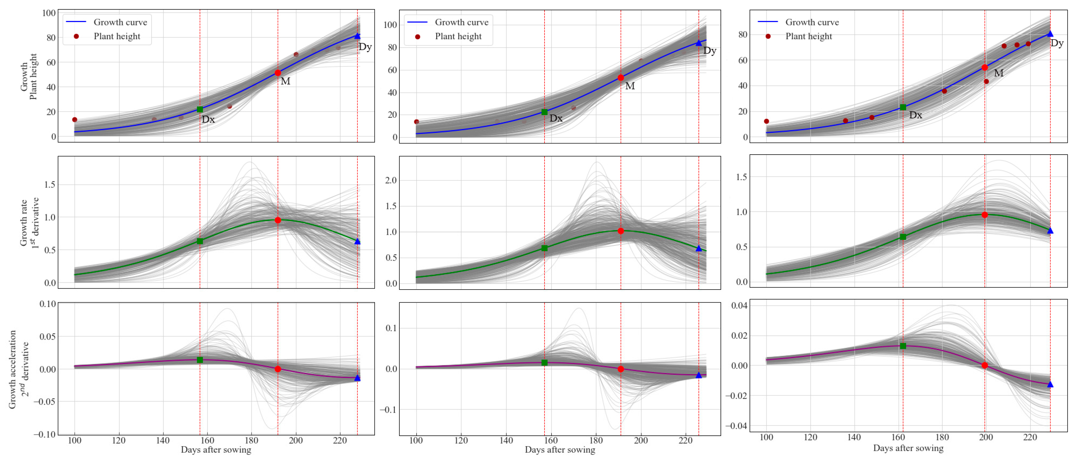 - Weiyuan, H.; Ziqiu, L.; Xiangqian, F.; Jinhua, Q.; Aidong, W.; Shichao, J.; Danying, W.; Song, C. Estimating key phenological dates of multiple rice accessions using unmanned aerial vehicle-based plant height dynamics for breeding. Rice Sci. 2024, 31, 617–628. [Google Scholar] [CrossRef]