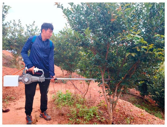 To address the challenges of inefficient Camellia oleifera fruits harvesting in hilly and mountainous regions due to the difficulty of using large machinery, a handheld vibration harvesting device for Camellia oleifera fruits was designed. Based on the vibration-induced detachment process of Camellia oleifera fruits, a single-pendulum dynamic model of the “fruit-branch” system was established and solved to calculate the tangential acceleration required for fruit detachment. The key factors influencing harvesting efficiency were identified as vibration frequency, amplitude, height, and duration. Using ANSYS, modal response and harmonic response analyses were conducted on a 3D model of the Camellia oleifera tree to determine the operational parameters ensuring branch acceleration meets the fruit detachment. Furthermore, a rigid-flexible coupling simulation system integrating the harvesting device and Camellia oleifera tree was developed on the ADAMS. This analysis revealed the variation patterns of branch acceleration with respect to vibration frequency and clamping height, thereby validating the rationality of the dynamic model and the feasibility of the device. Finally, an orthogonal experiment was designed using Design-Expert 13, and multi-objective optimization analysis was performed on the device's working parameters based on the experimental data. The aforementioned research identified the optimal working parameter combination and actual harvesting performance of the handheld vibration harvesting device: when the vibration frequency is 14 Hz, vibration height is 980 mm, and vibration duration is 13 s, the fruit picking rate reaches 95.22%. The harvesting efficiency of this device is significantly higher than manual picking methods, fully meeting the requirements for efficient Camellia oleifera fruit harvesting.