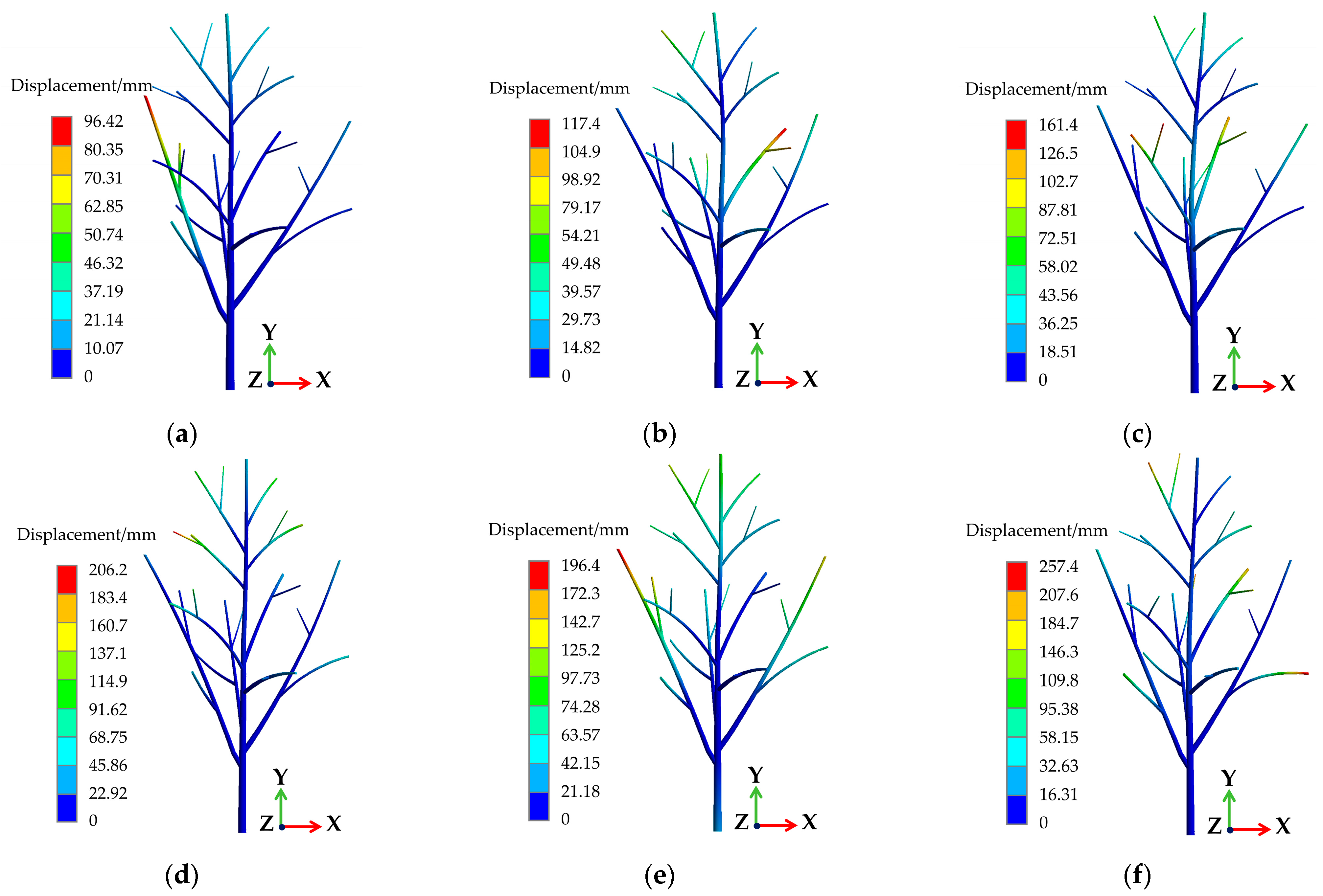 - Hu, Y.; Zheng, Z.; Yu, C.; Feng, J.; Qiao, Y. Vibration Response Characteristics of Jujube Trees Based on Finite Element Method and Structure-from-Motion. Sci. Hortic. 2024, 331, 113125. [Google Scholar] [CrossRef]