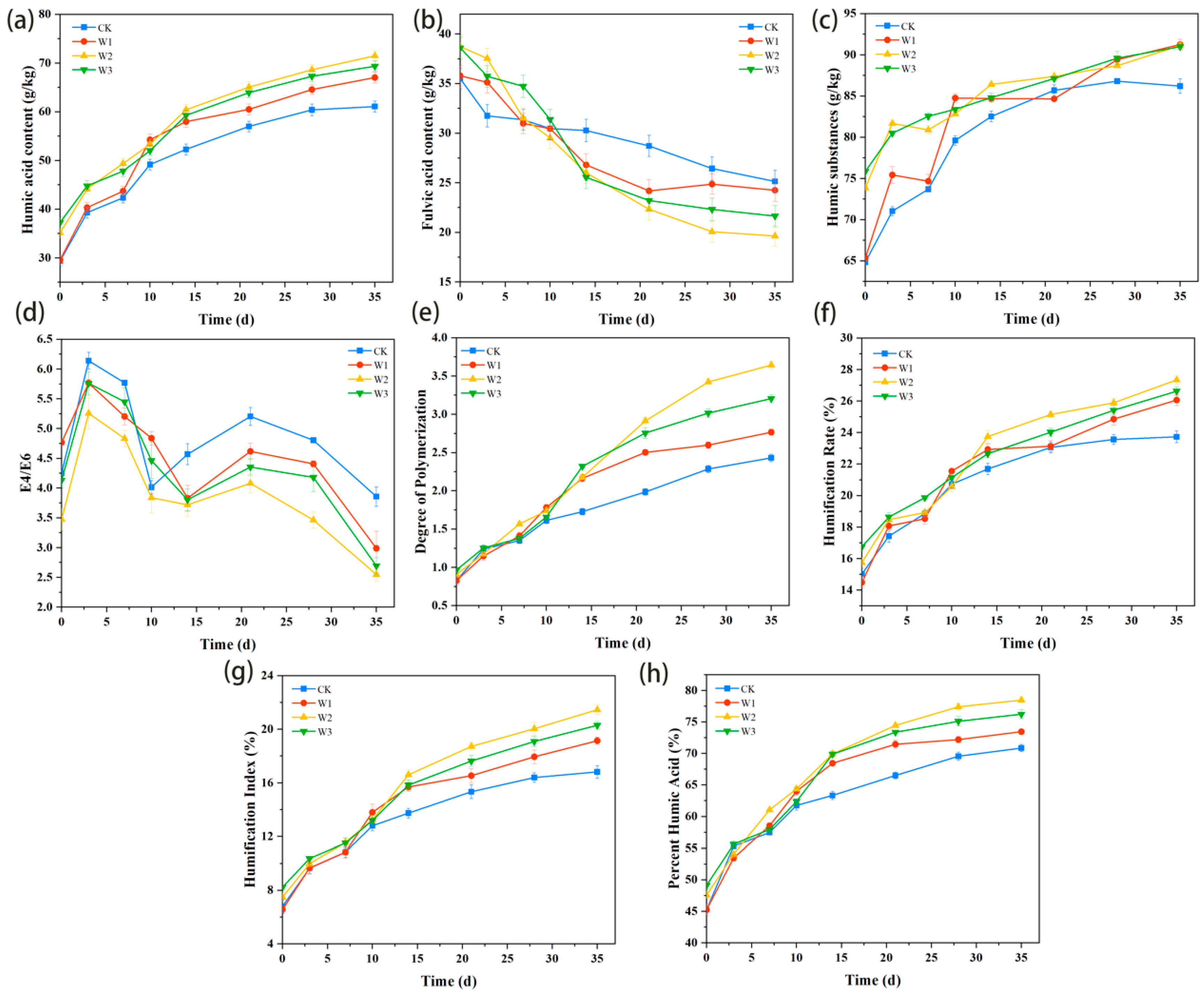 - Lu, M.; Hao, Y.; Lin, B.; Huang, Z.; Zhang, Y.; Chen, L.; Li, K.; Li, J. The bioaugmentation effect of microbial inoculants on humic acid formation during co-composting of bagasse and cow manure. Environ. Res. 2024, 252, 118604. [Google Scholar] [CrossRef]