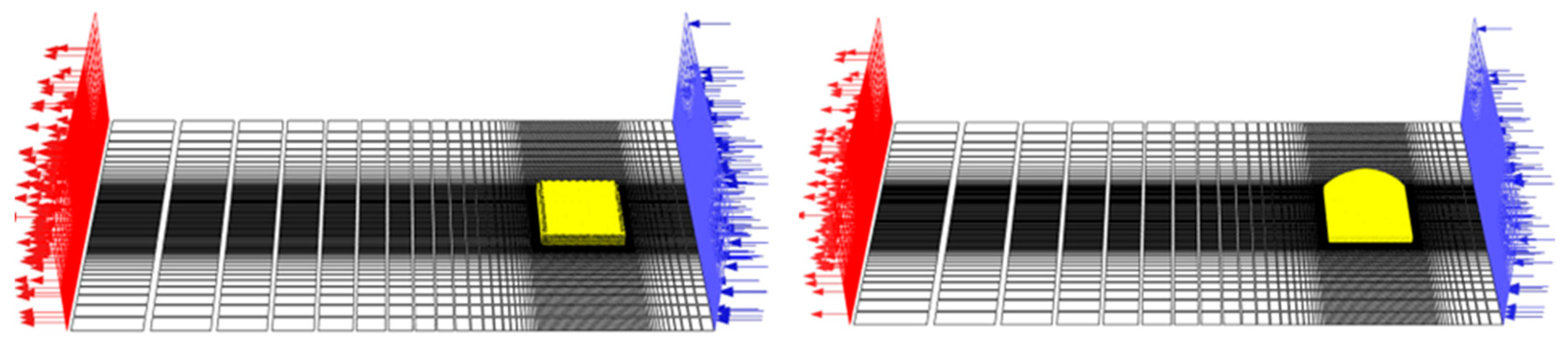 Figure 5, the structured computational meshes were developed for both greenhouse types. The external computational domain was defined based on previous studies that analyzed wind loads on greenhouse structures [