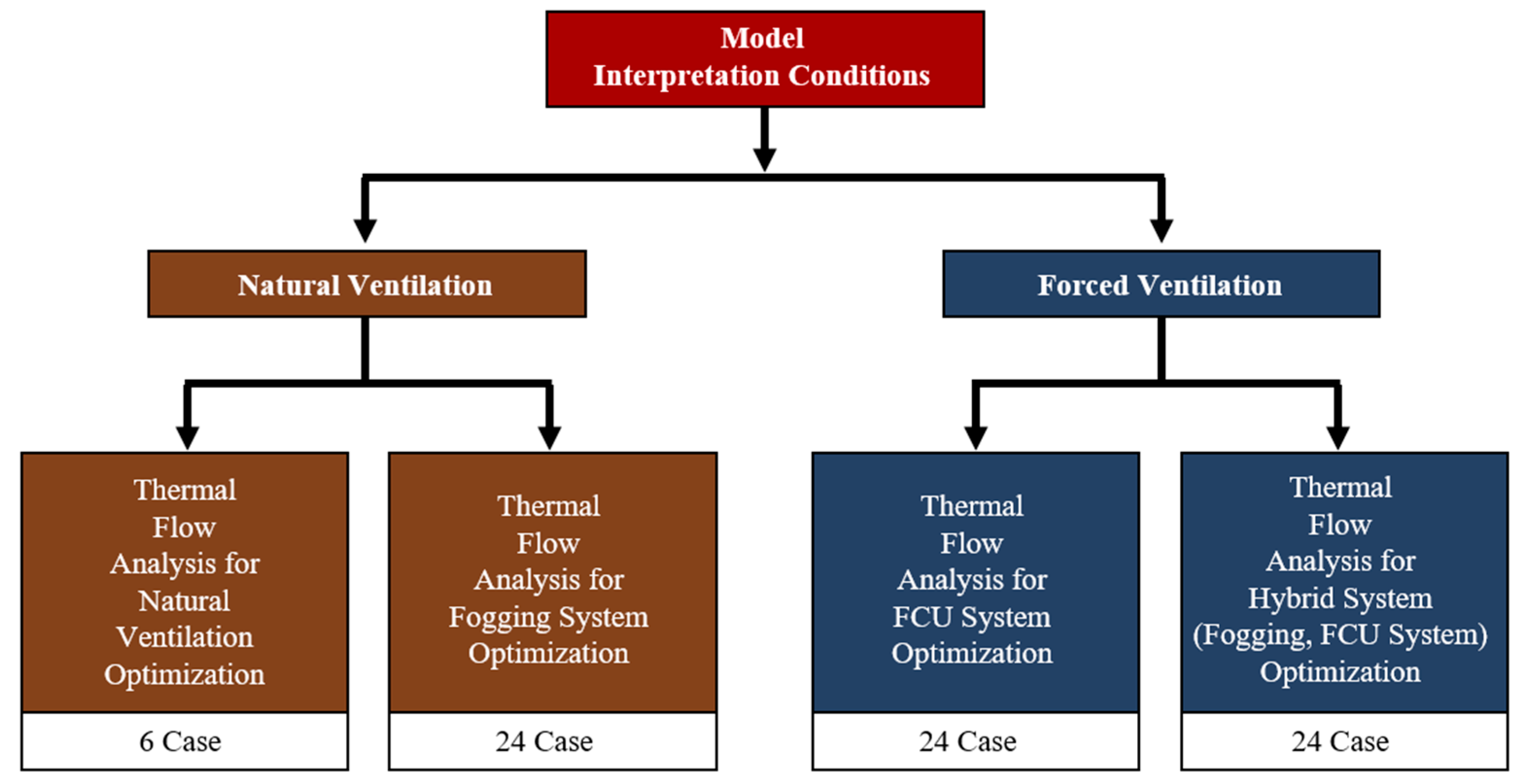 Classification of CFD simulation case by ventilation strategy and cooling system configuration.