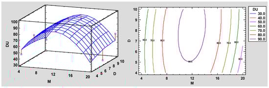 As a result of the statistical processing of the experimental data, carried out in accordance with the plan presented in Table 1, the following regression equation was obtained: