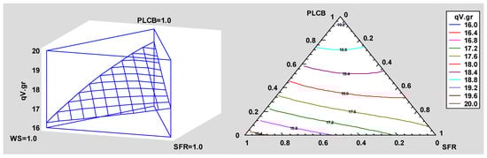 To study the effects of mixture formation, ten briquette samples were analyzed and tested. The briquettes were produced with the Briklis hydraulic press and were comprised both from mixtures with varying mass proportions of the components and from each component used individually. Peach lignocellulosic biomass (PLCB) was used as the main raw material, while WS and SFR served as secondary materials. The experiments were carried out according to the multifactorial design presented in Table 2.