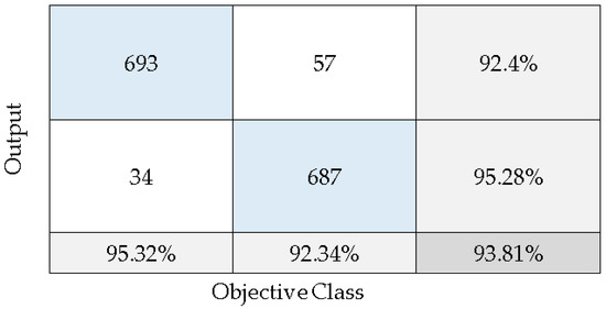 To determine the system with the best accuracy and performance, particularly when using clusters, the results were evaluated in terms of maximum and minimum errors, mean squared error (MSE), root mean squared error (RMSE), and mean absolute error (MAE) in the training and validation datasets. Additionally, a Kruskal–Wallis test was conducted to compare the medians of the data groups and assess whether the samples originated from the same population. Finally, a confusion matrix was utilized for the best-performing model to quantitatively evaluate its performance, aiding in identifying errors across all predictions.