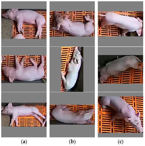 Examples of different piglet postures. (a) Lateral lying; (b) ventral lying; (c) other postures.