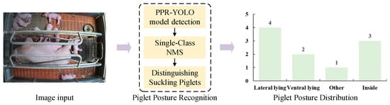 This study primarily focuses on piglet resting posture recognition by introducing the PPR-YOLO model tailored for sow targets and piglet posture detection tasks, thereby enhancing the ability to distinguish between different piglet postures. Since the postures of piglets within the sow’s area are related to suckling behaviors, this study emphasizes the distribution of piglet resting postures outside the sow’s area by analyzing the relative positional relationships between sows and piglets.