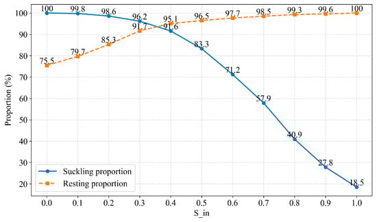 To determine the specific  threshold setting in this study, a step size of 0.1 was used on the dataset to track changes in the proportions of piglets’ resting and suckling behaviors under different  thresholds, as illustrated in Figure 9. The blue curve represents the recall rate of piglet suckling behavior above the  threshold, while the orange curve indicates the recall rate of piglet resting postures below the  threshold. A larger  threshold causes missed detections of suckling postures, whereas a smaller one leads to resting postures being misclassified as suckling postures. Therefore, to balance both, this paper sets  to 0.3, which excludes 96.2% of piglet suckling behaviors while retaining 91.7% of resting postures.