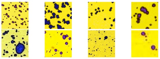 Two distinct sets of WSP images were provided, forming the basis for the analysis and study of the visual aspect of real spraying on a WSP. The images were also used to test the application of the implemented algorithms. Given the task of manually labeling each droplet, only two images were properly annotated for testing purposes.