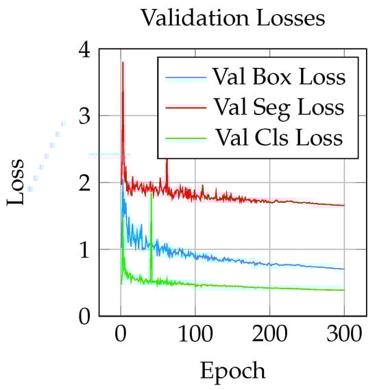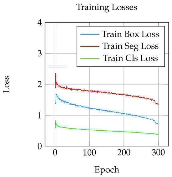 - YOLOv8 training parameters: The YOLOv8 medium model for segmentation was chosen to create a balance between accuracy and computational efficiency. This model was the largest model that could be used with the computational constraints of the computer used during the development of this project. It was trained for 300 epochs to ensure convergence.