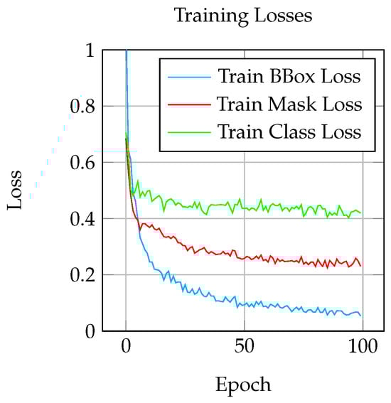 - Mask R-CNN training parameters: The model was trained for 100 epochs, as testing showed it converged before reaching this limit, ensuring sufficient training without overfitting. A small learning rate was selected to ensure smooth convergence, as larger updates could destabilize the complex Mask R-CNN architecture. A confidence threshold of 0.4 was set to balance prediction certainty and model sensitivity, enabling accurate droplet detection while controlling false positives.