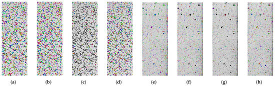 - Size distribution of droplets: The algorithm uses the Rosin–Rammler distribution to determine droplet sizes in the synthetic dataset. This distribution is a widely used function that expresses drop size distribution with two parameters, representative diameter and a measure of drop size dispersion, and is useful for single-peaked results [10,18]. In this study, droplet size is represented as the area of the polygon describing each droplet in pixels.