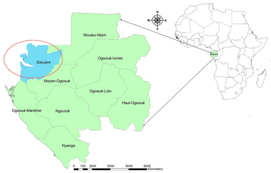 - Ekouala, L. Le Développement Durable et le Secteur des Pêches et de L’aquaculture au Gabon: Une étude de la gestion Durable des Ressources Halieutiques et leur Ecosystème dans les Provinces de l’Estuaire et de l’Ogooué Maritime; Université du Littoral Côte d’Opale: Dunkerque, France, January 2013. [Google Scholar]