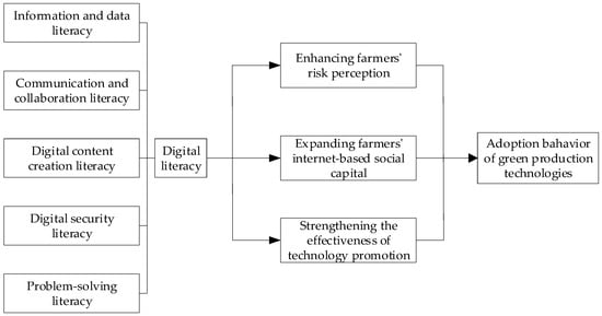 Theoretical model of the impact of digital literacy on farmers’ adoption behavior of green production technologies.