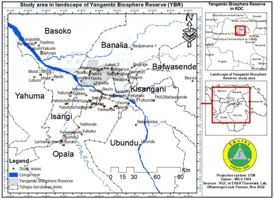 - Bolakonga, A.B.; Disonama, M.; Michel, B.; Lebailly, P. Influence de l’enclavement sur l’économie rurale en République Démocratique du Congo: Cas du Territoire d’Opala. In XXVIIIèmes Journées du Développement ATM 2012 “Mobilités Internationales, Déséquilibres et Développement: Vers un Développe-ment Durable et une Mondialisation Décarbonée? Association Tiers-Monde, CNRS: Orléans, France, 2012; pp. 1–17. Available online: https://orbi.uliege.be/handle/2268/137818 (accessed on 14 June 2022).