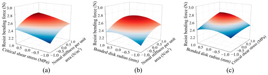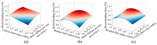 When the bond parameters between particles reach critical values, the bonding connections break, causing the particles to revert to their discrete characteristics. The maximum tensile and shear forces for each structure of the rice plant can be determined through tensile and shear tests, with detailed results recorded in Appendix Table A5 and Table A6, respectively. The critical normal stress and critical shear stress can be calculated using the established Equations (9) and (10).