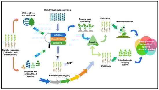 - Thakur, N.R.; Ingle, K.P.; Sargar, P.R.; Baraskar, S.S.; Kasanaboina, K.; Awio, B.; Pranati, J.; Abdi, G. Sustainable utilization of wild germplasm Resources. In Sustainable Utilization and Conservation of Plant Genetic Diversity; Al-Khayri, J.M., Jain, S.M., Penna, S., Eds.; Springer: Singapore, 2024; Volume 35, pp. 1–22. [Google Scholar]